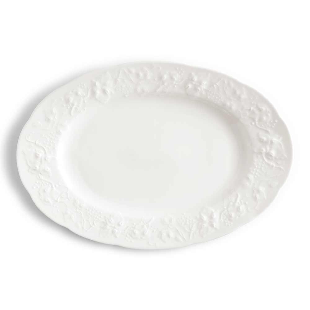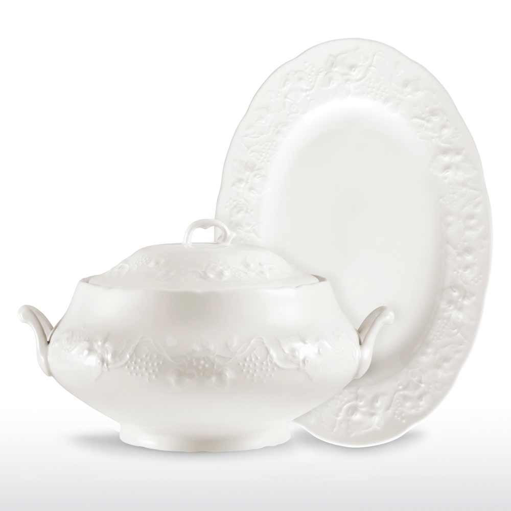 Terrina de sopa grande e elegante e refinada e bandeja oval em porcelana branca, 2 peças.