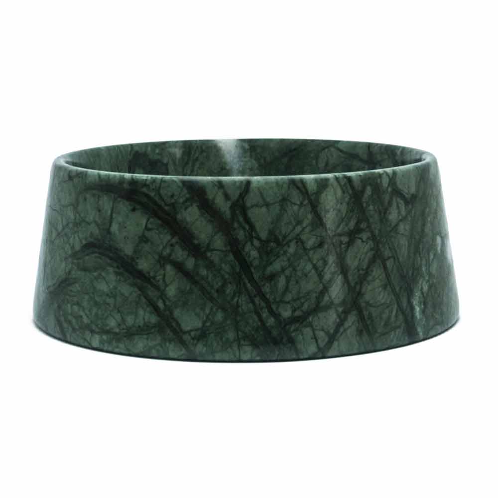 Maravilhosa tigela para cães e gatos caracterizada pelo mármore rosa ou verde que o compõe. É uma peça única visto que cada bloco de mármore utilizado difere dos restantes nos veios e tonalidades.