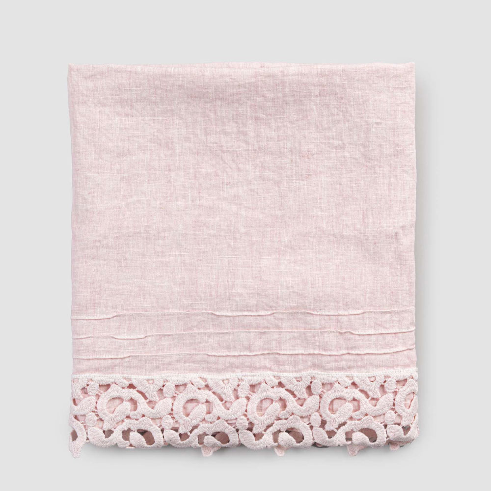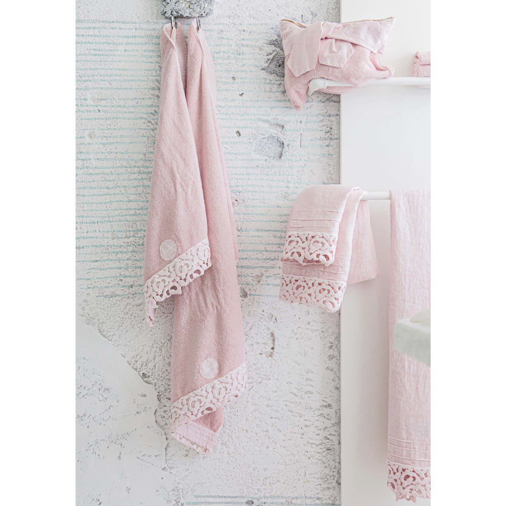 Toalha de banho pesada de linho com renda poema, luxo e design em 2 acabamentos made in Italy.