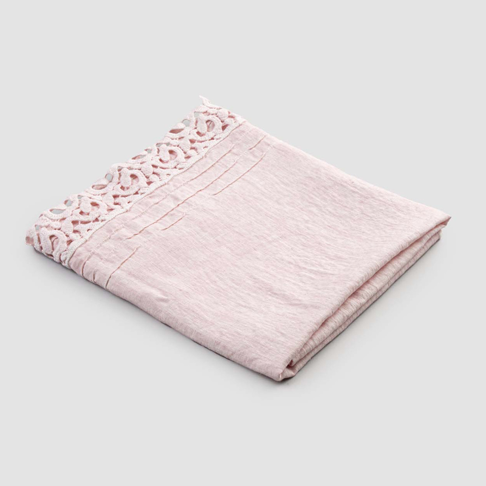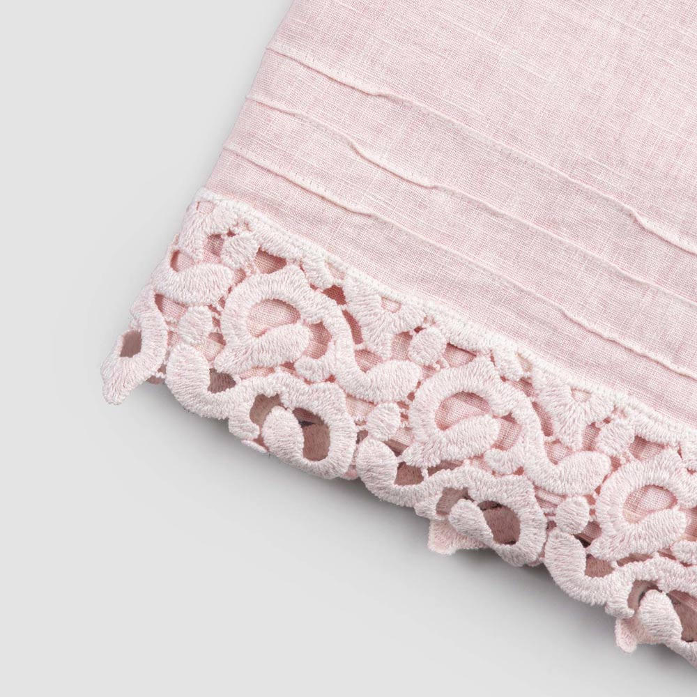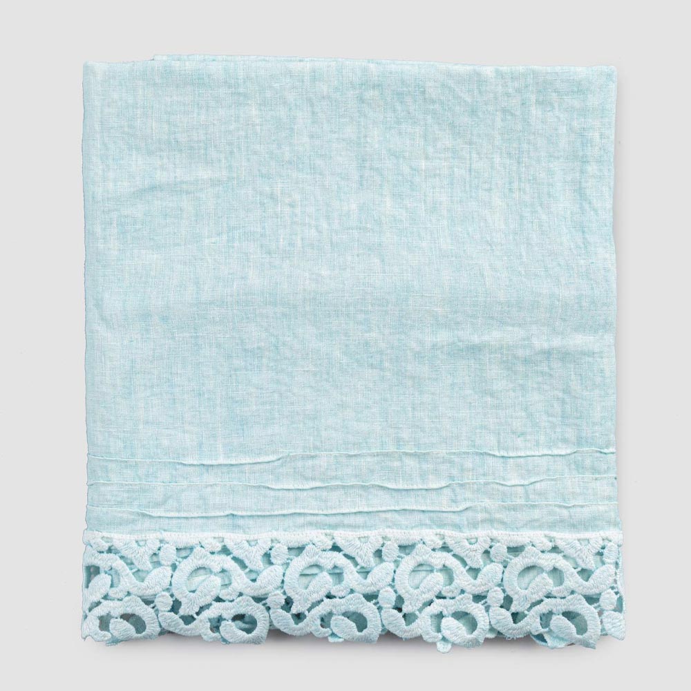toalha de banho pesada de linho turquesa ou rosa bebê com renda Poema em um dos dois lados curtos.
