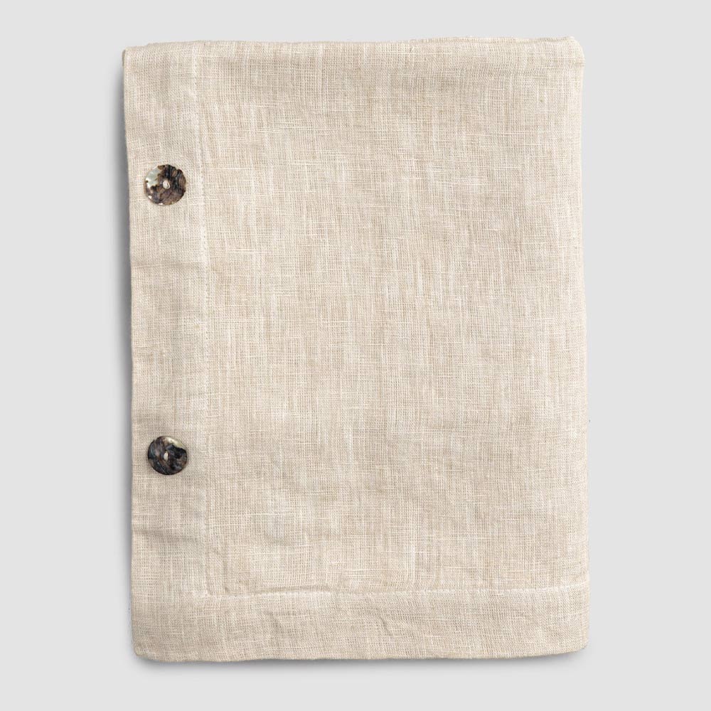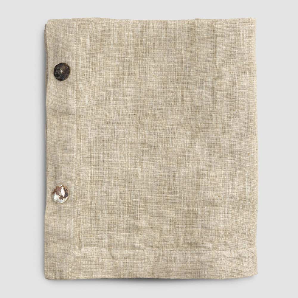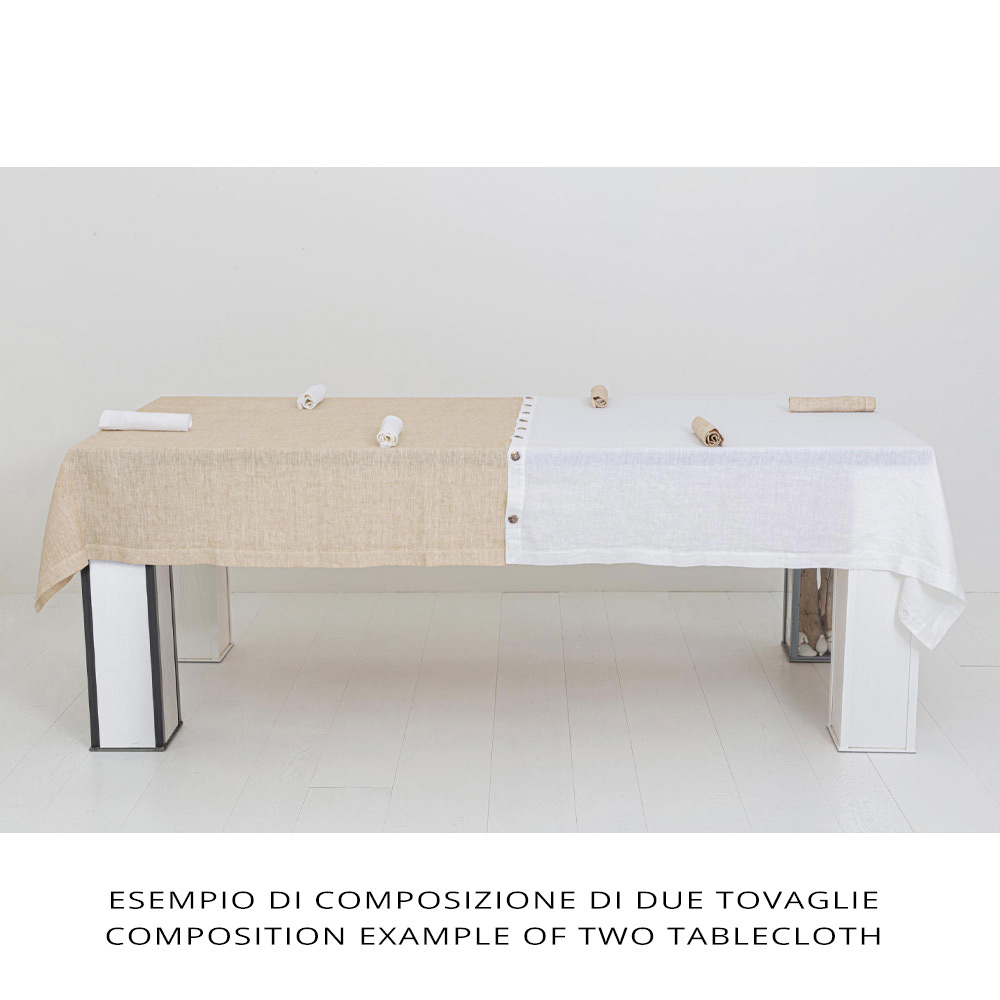 Toalha de mesa modular de linho com botões em madrepérola, artesanal de qualidade made in Italy.