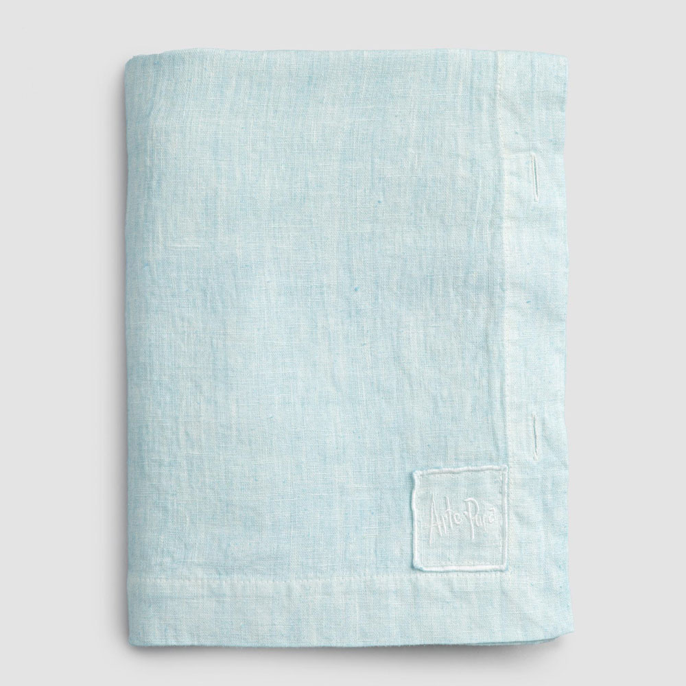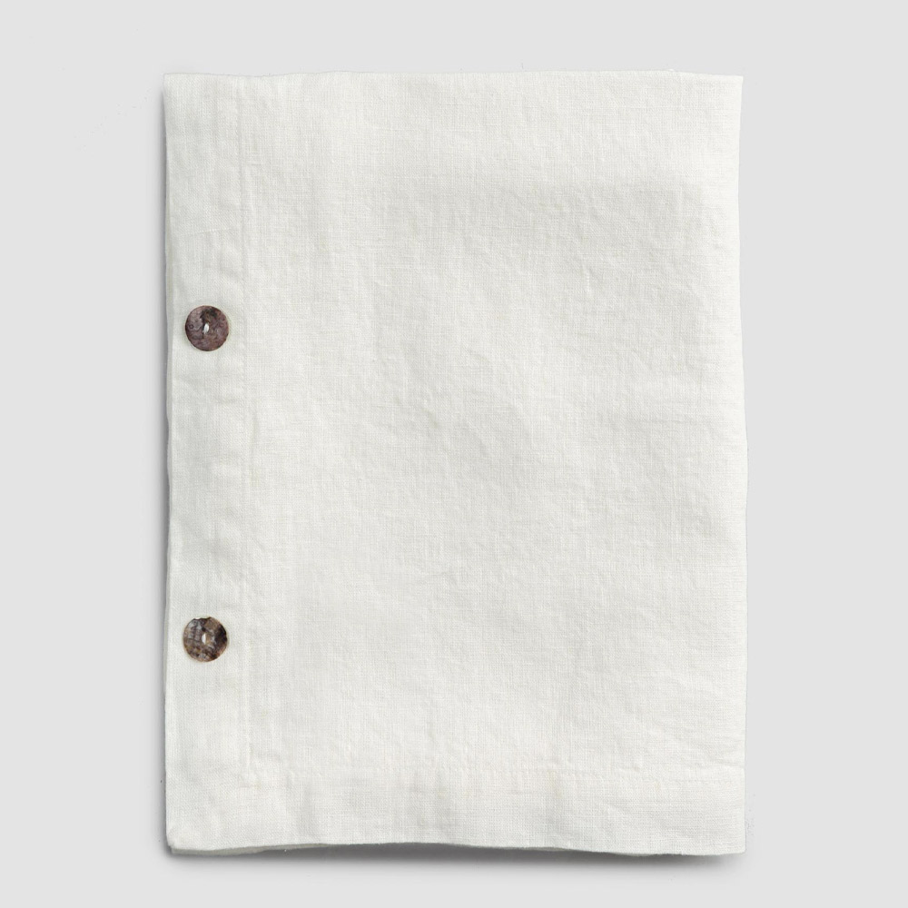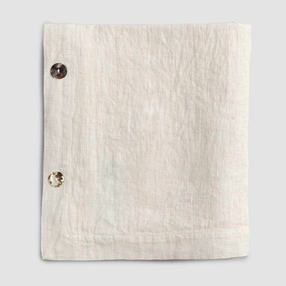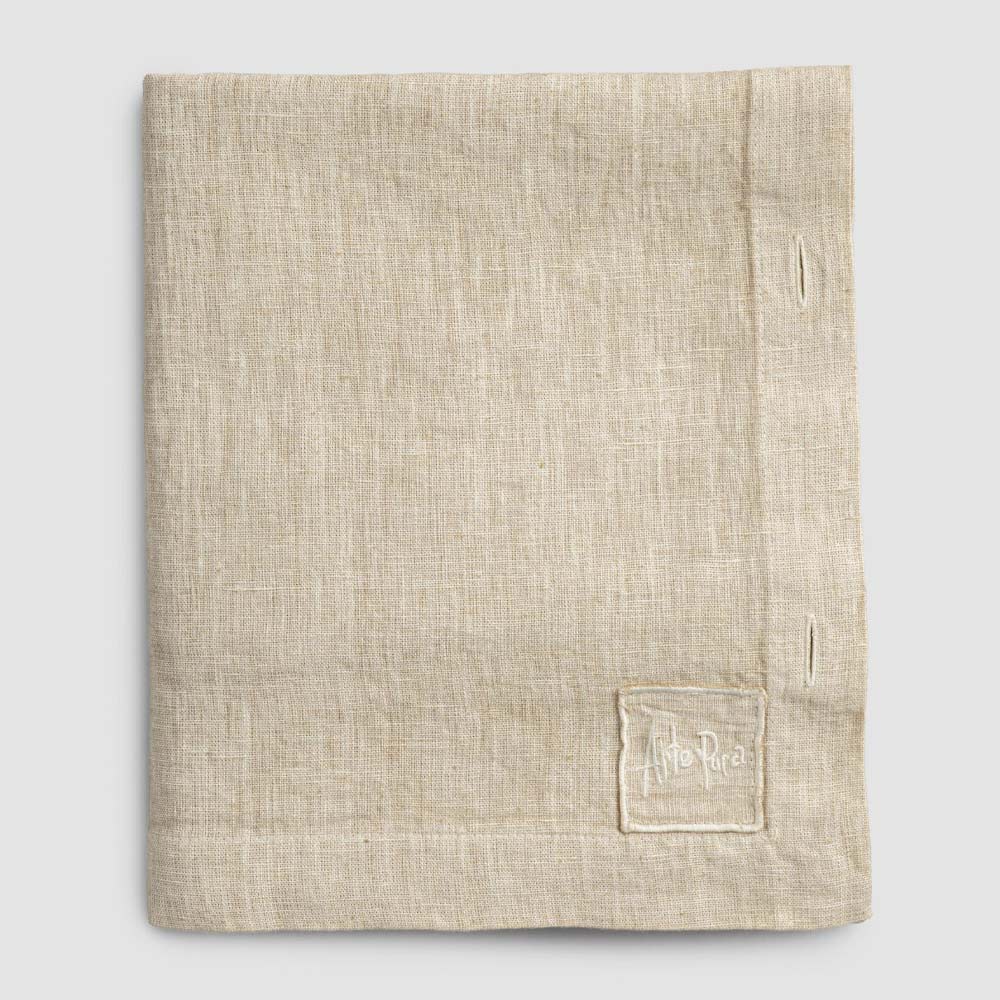 Toalha de mesa modular de linho com botões em madrepérola, artesanal de qualidade made in Italy.