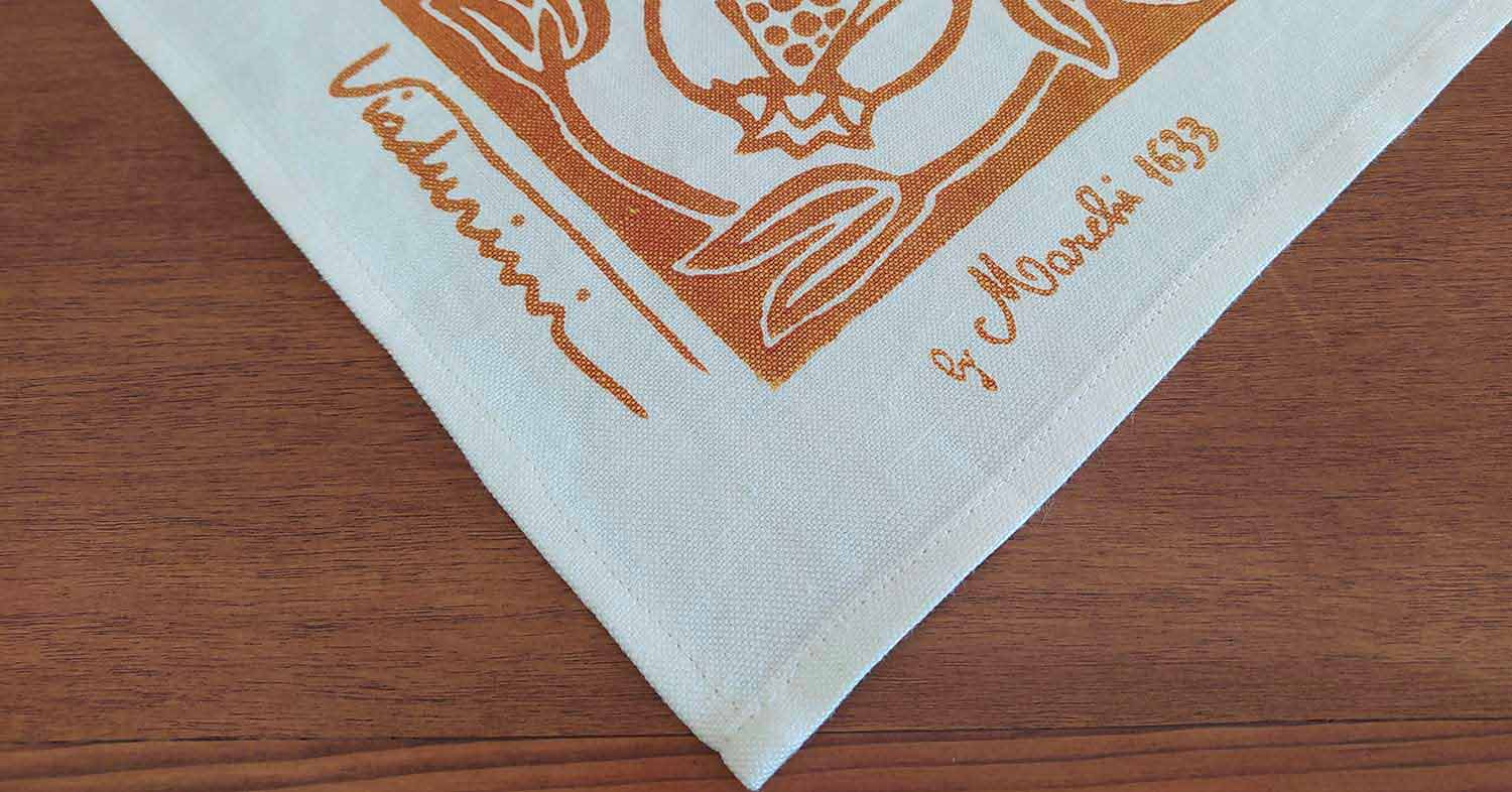Individual de mesa quadrado de artesanato italiano de alta qualidade, feito de linho puro com duas variações de cores e design impresso à mão, peça única de qualidade e valor fabricada na Itália.