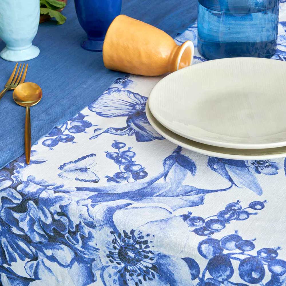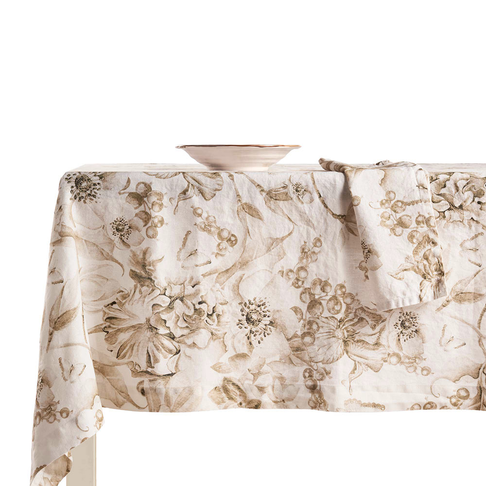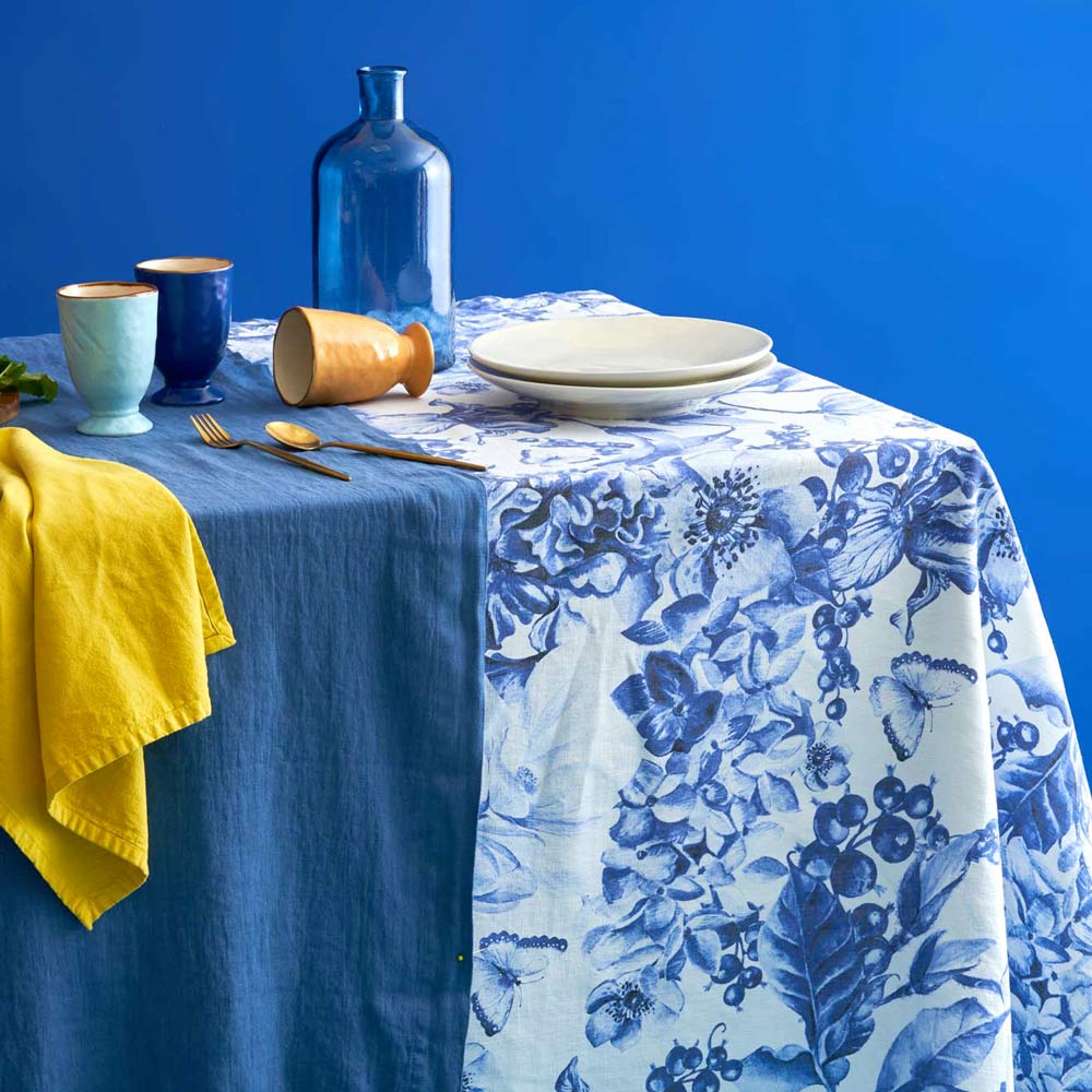 Celebre a beleza e a qualidade do Made in Italy com esta toalha de mesa de linho: uma expressão de artesanato e design que eleva cada momento passado à mesa.