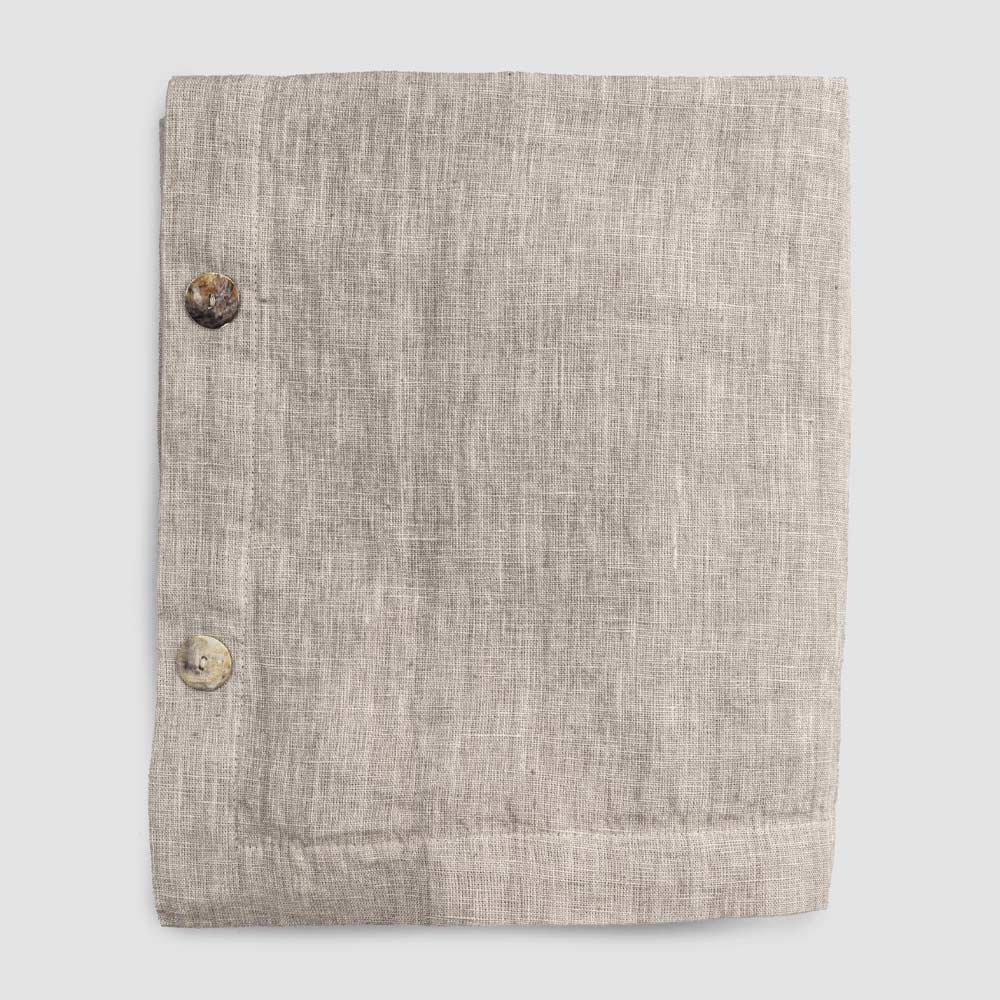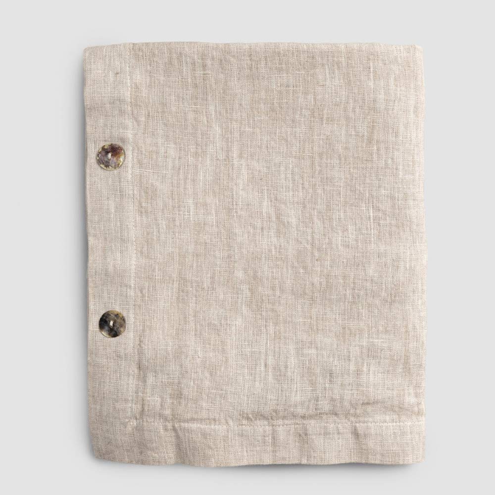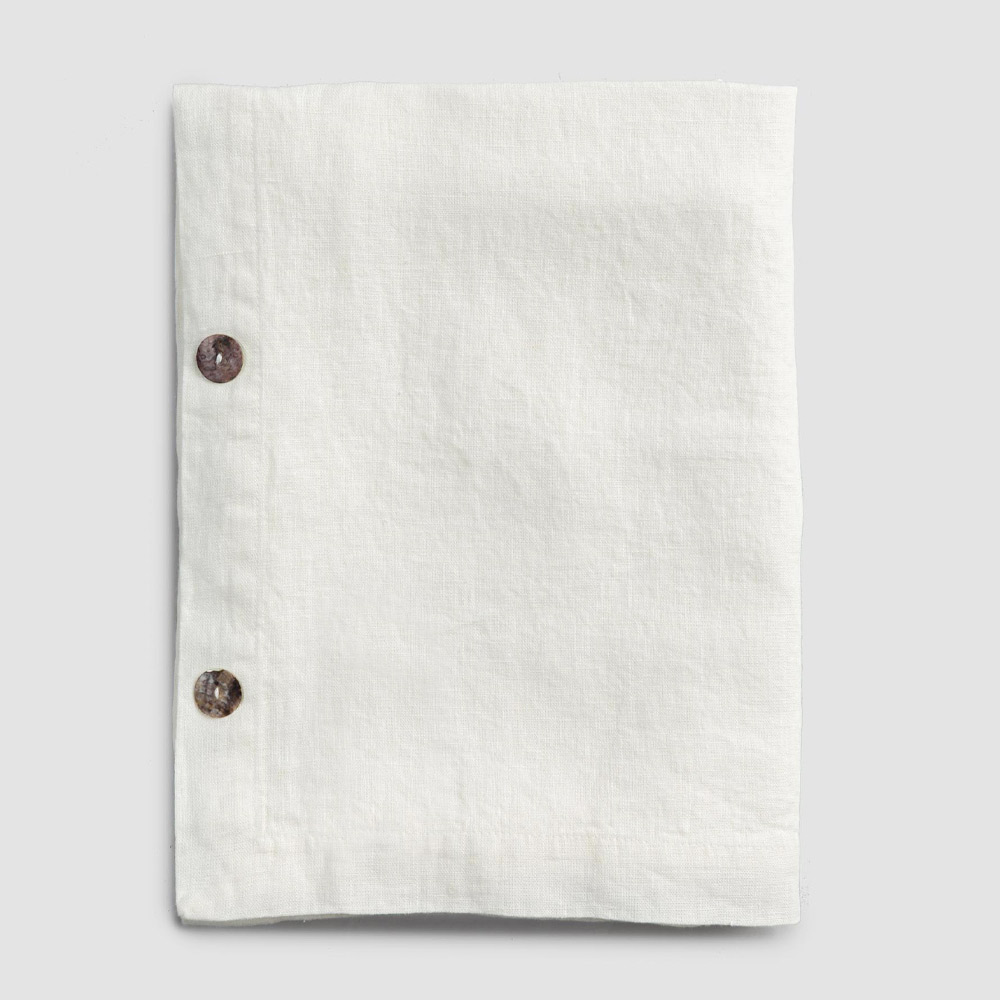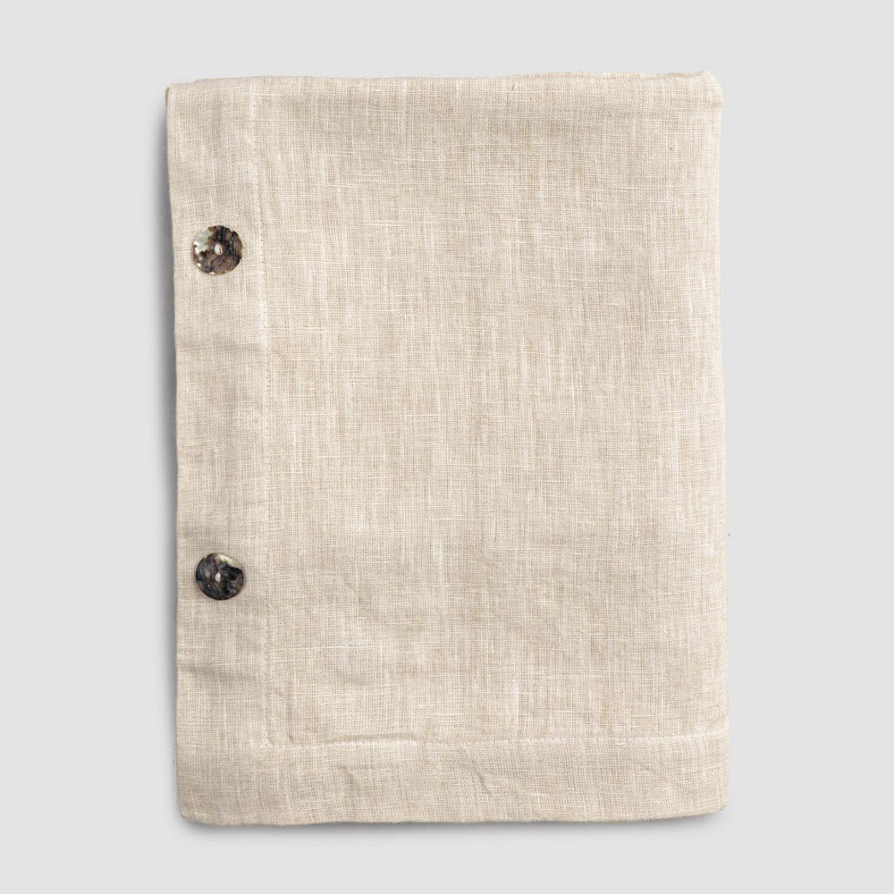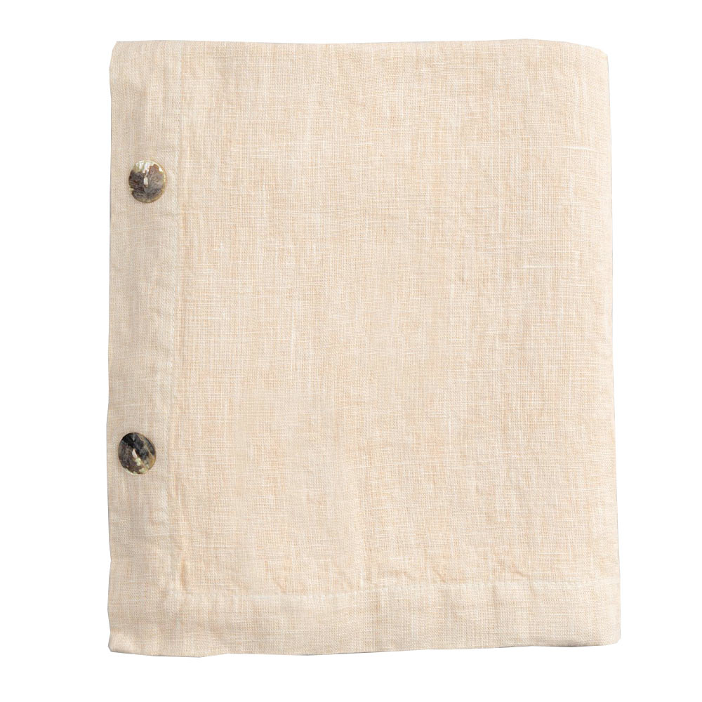 Toalha de mesa modular retangular de linho com botões de madrepérola, artesanal de qualidade made in Italy.