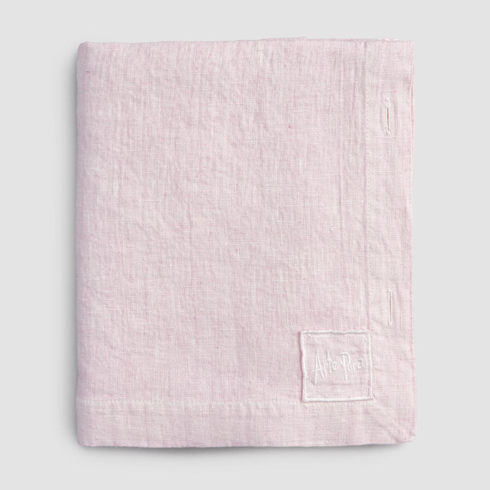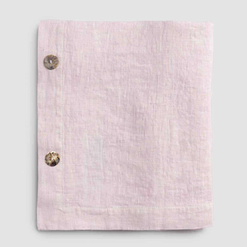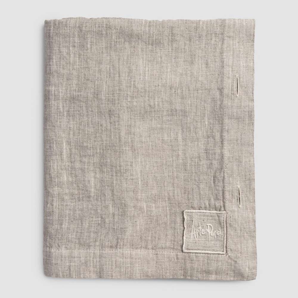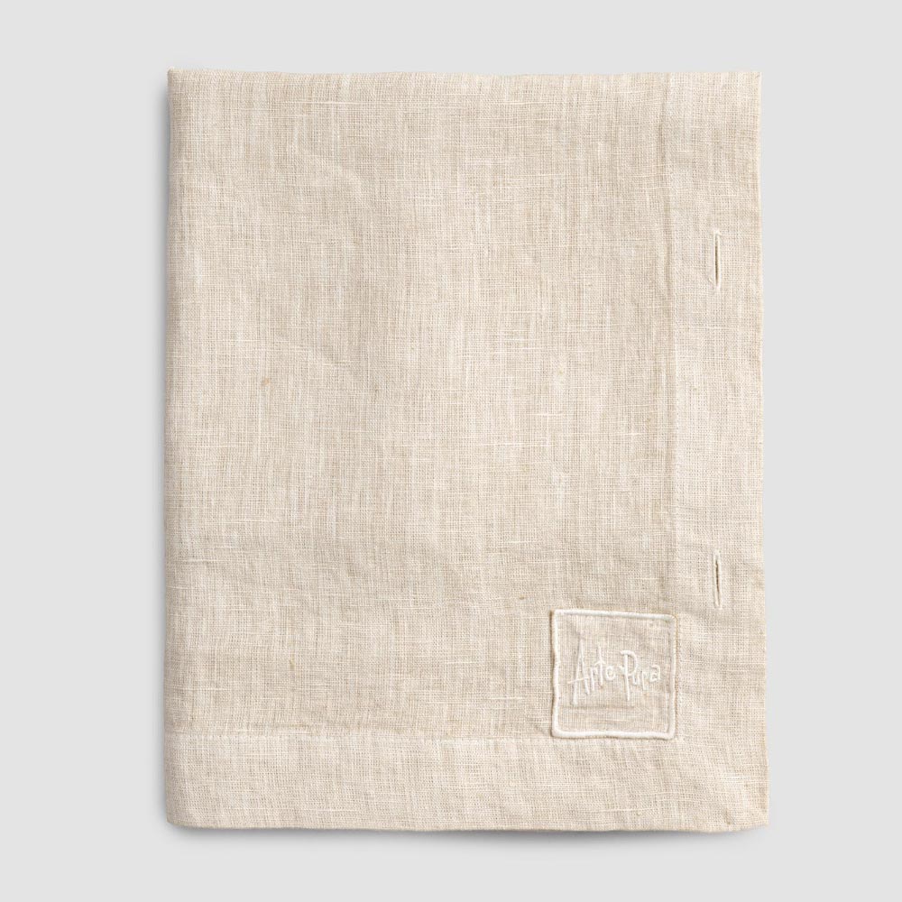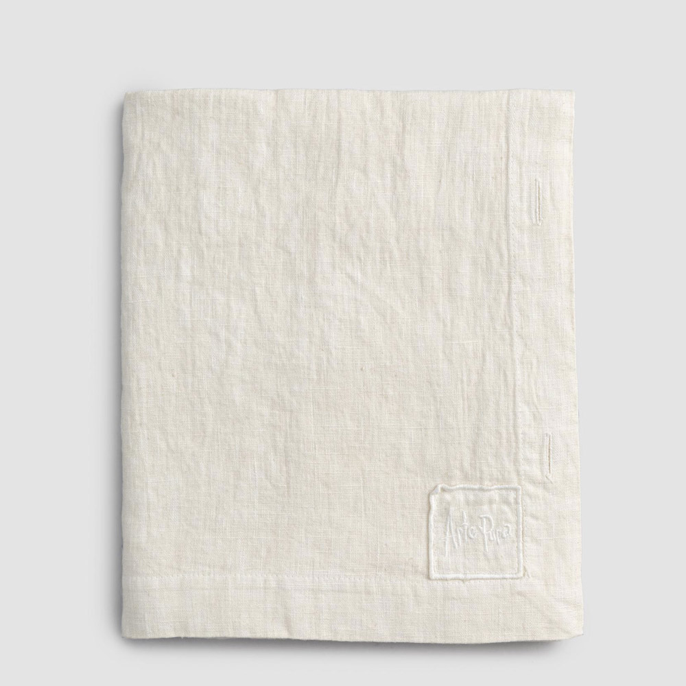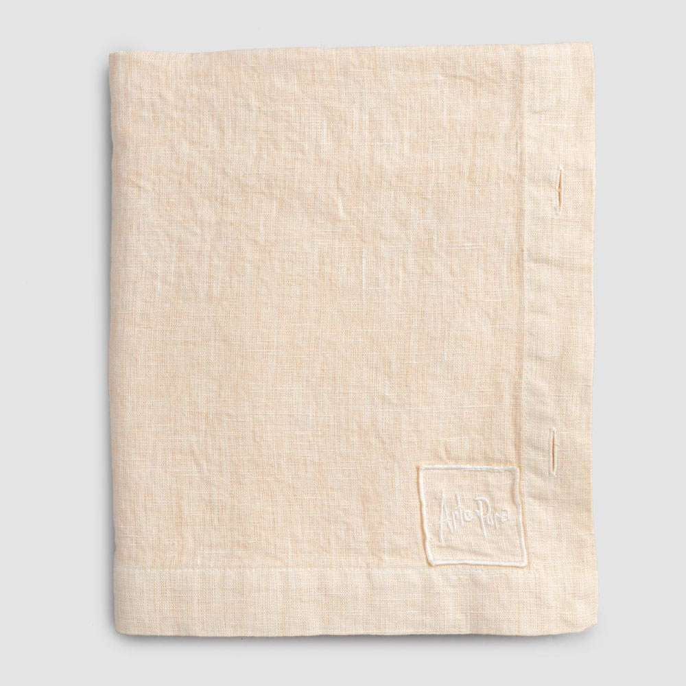 Toalha de mesa modular retangular de linho com botões de madrepérola, artesanal de qualidade made in Italy.