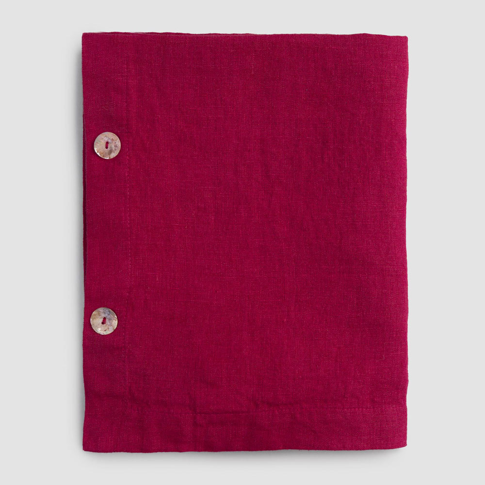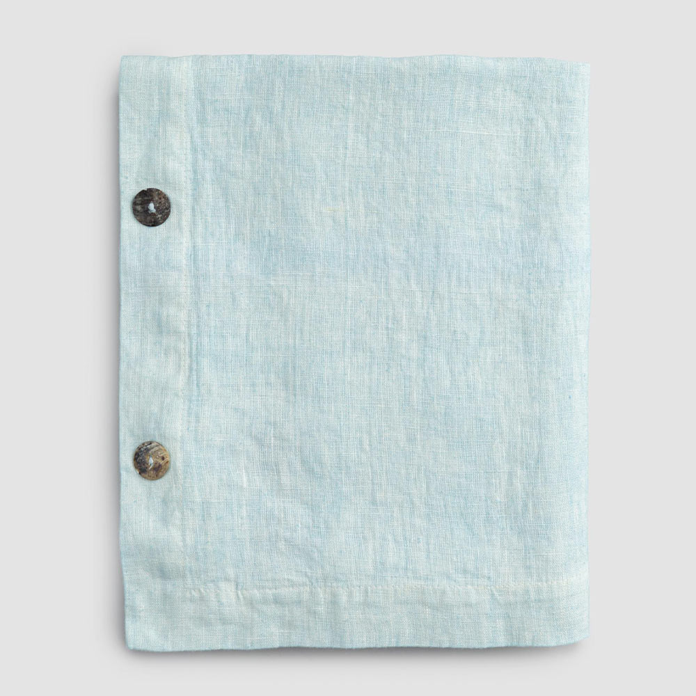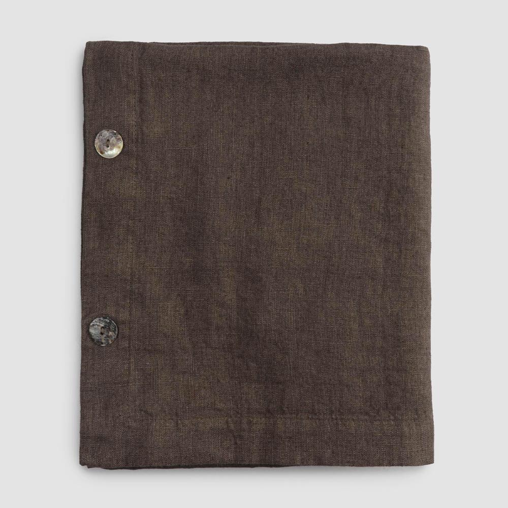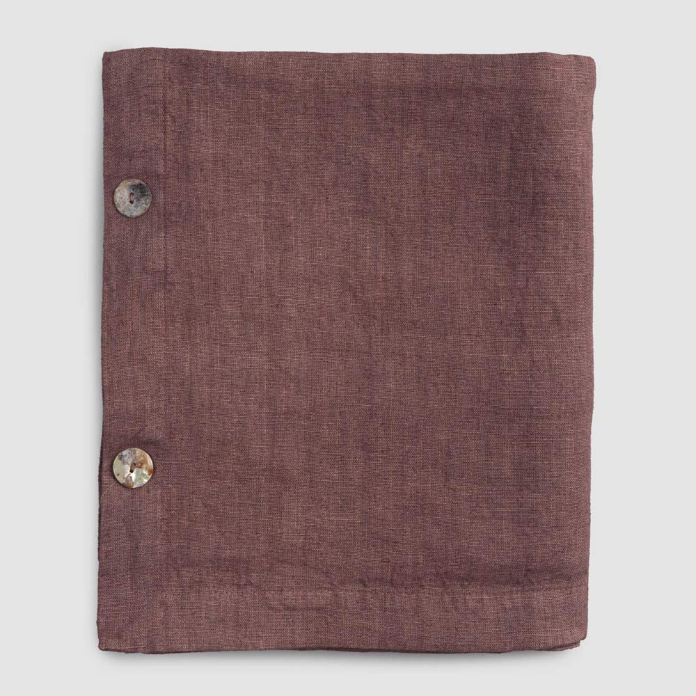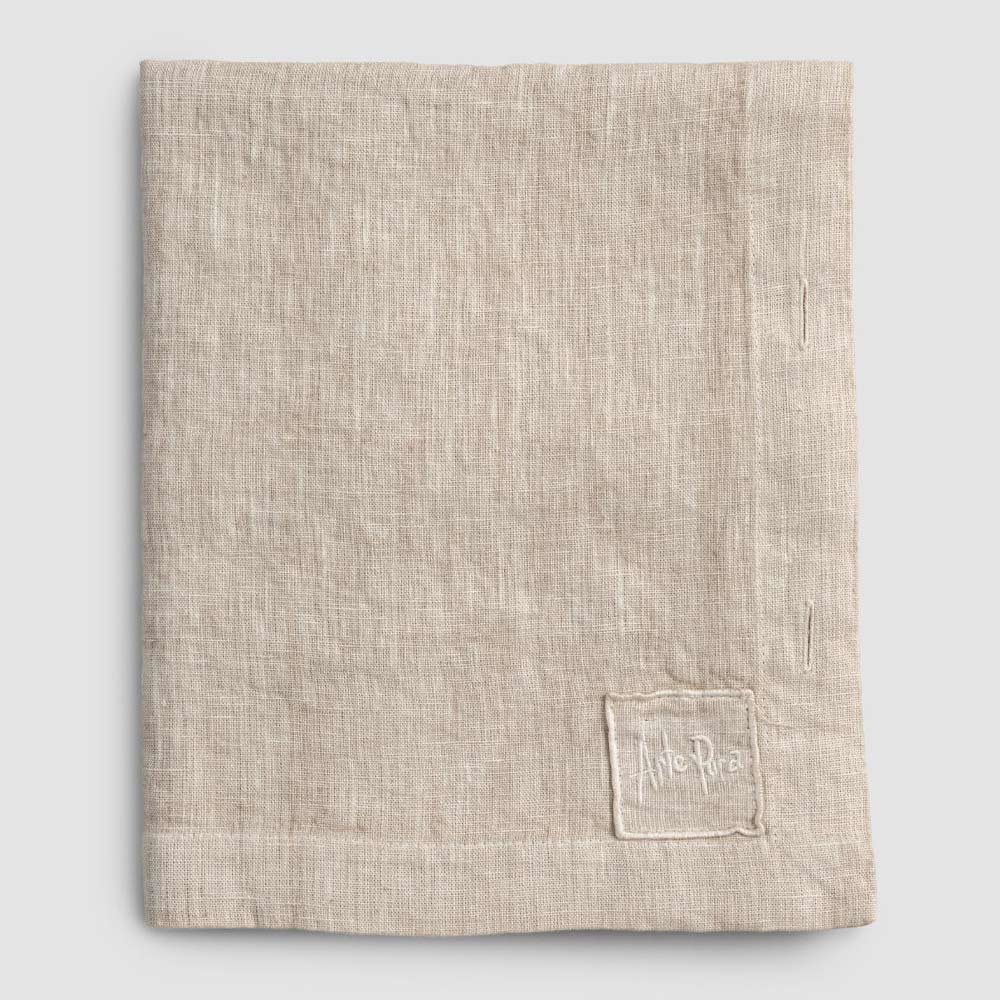 Toalha de mesa modular retangular de linho com botões de madrepérola, artesanal de qualidade made in Italy.
