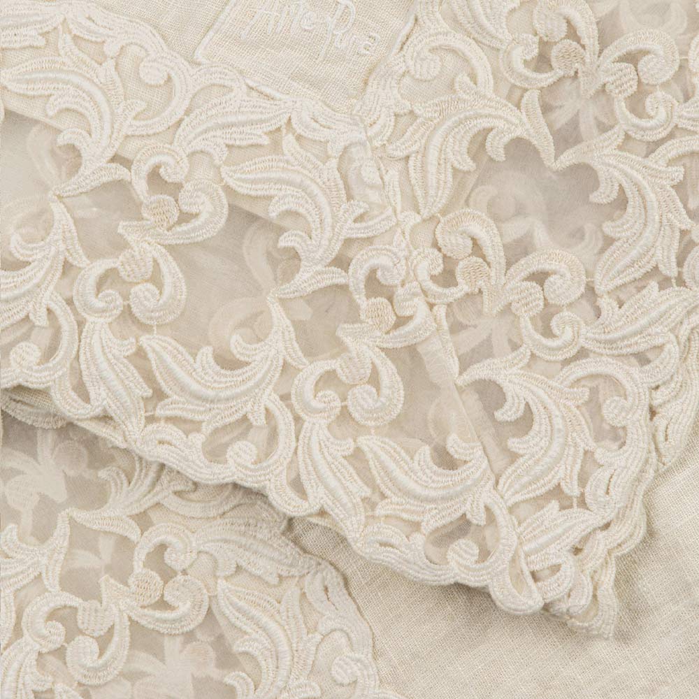 toalha de mesa quadrada de linho bege rosado embelezada com renda Farnese. Fabricado na Itália com materiais de alta qualidade e macio ao toque graças a tratamentos especiais que realçam o aspecto natural. Ideal para mesa, pois é apoalergênico e antibacteriano, além do uso de