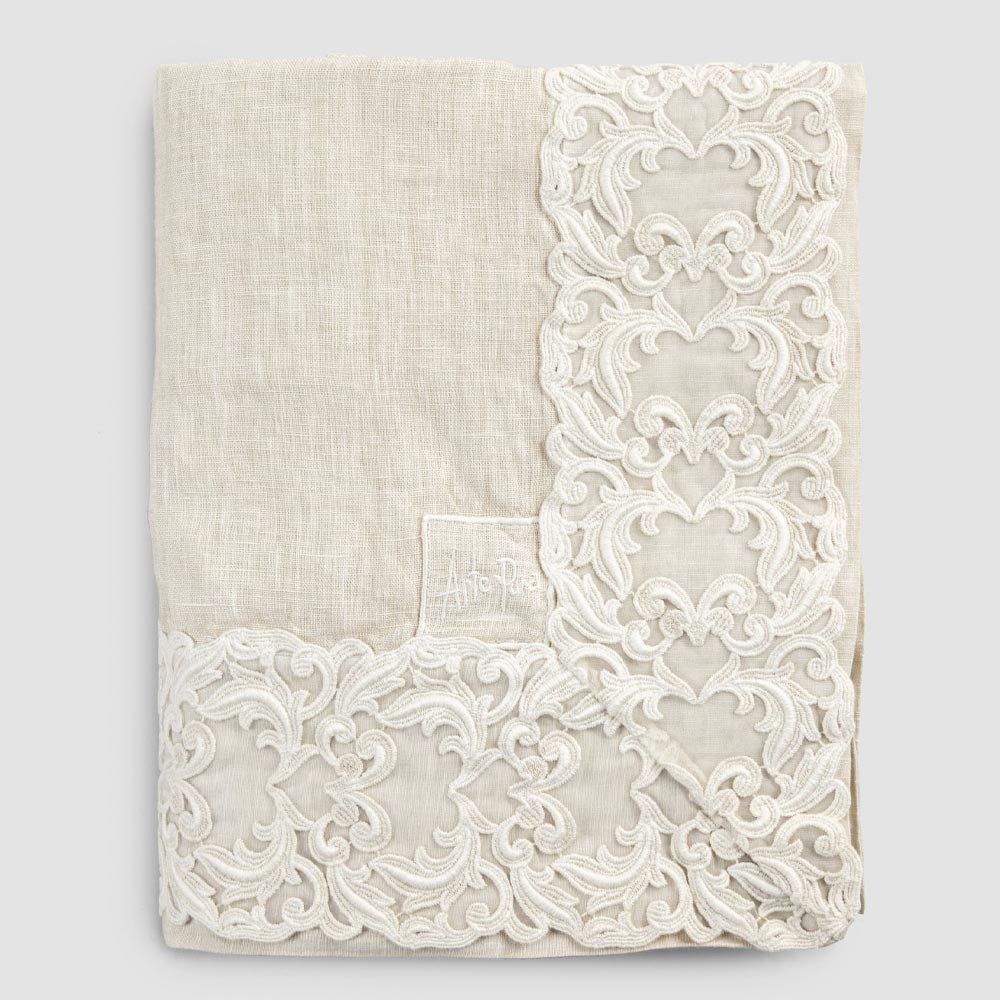 Toalha de mesa de linho com renda retangular Farnese, item fino made in Italy.