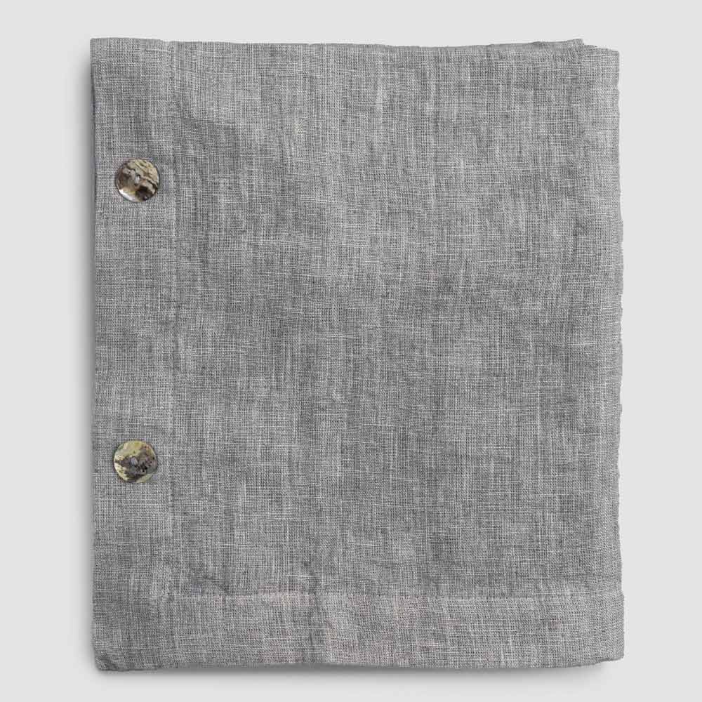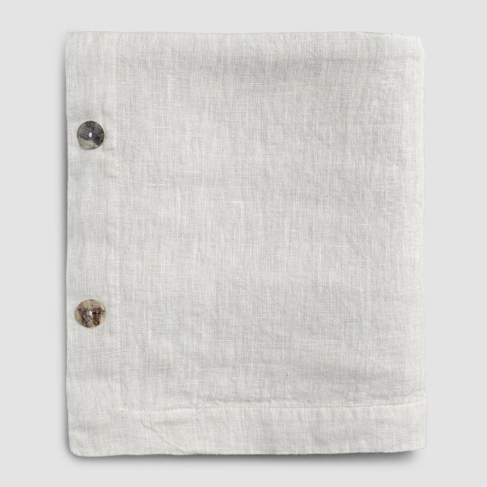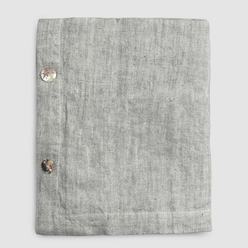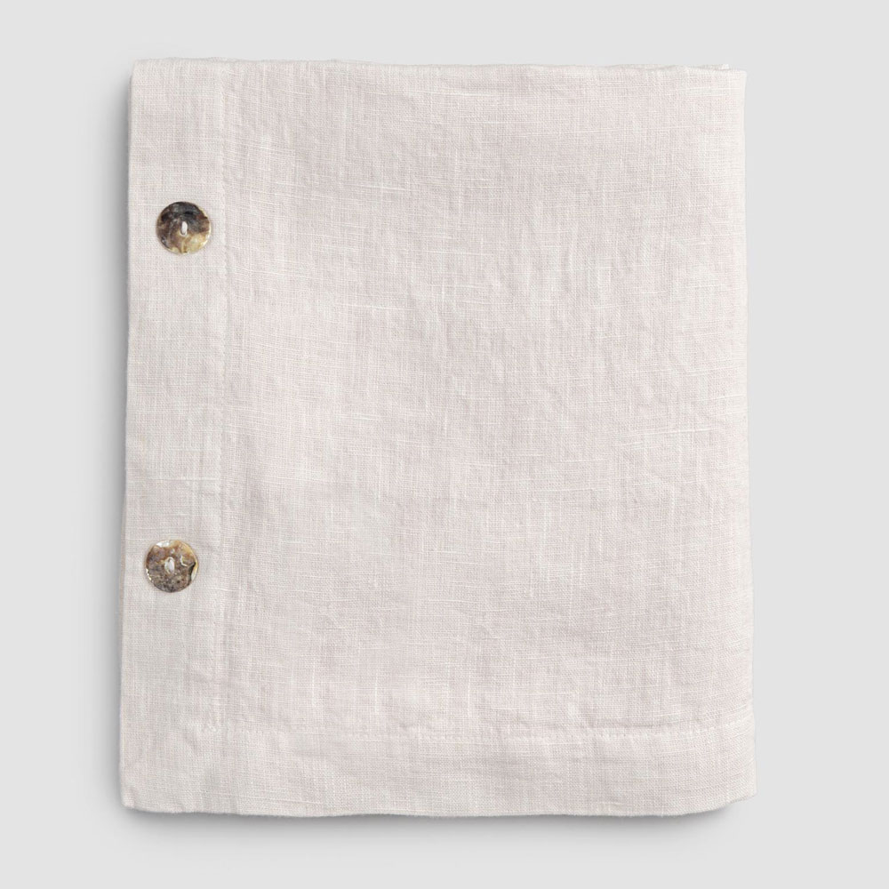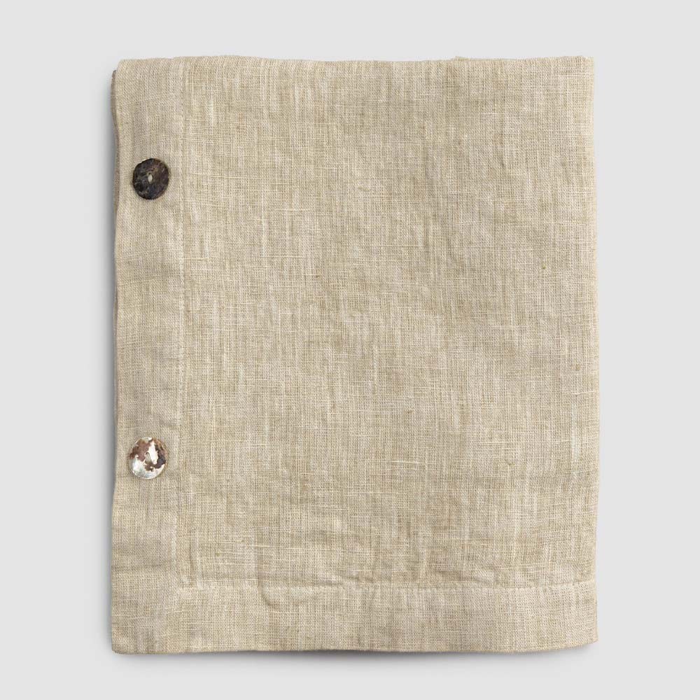Toalha de mesa modular retangular de linho com botões de madrepérola, artesanal de qualidade made in Italy.