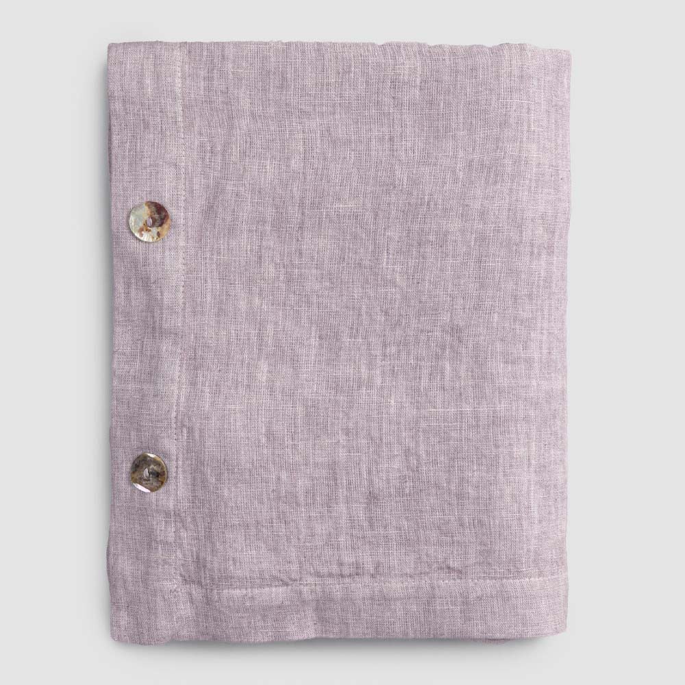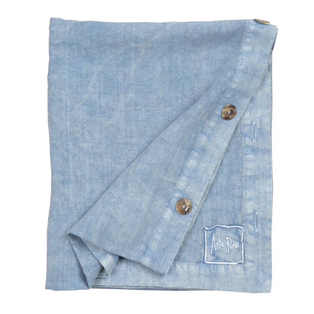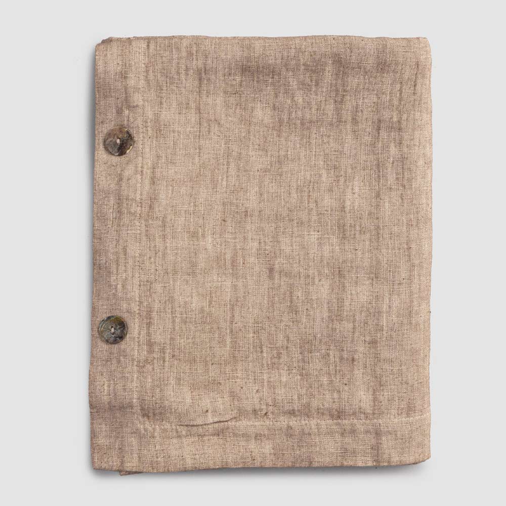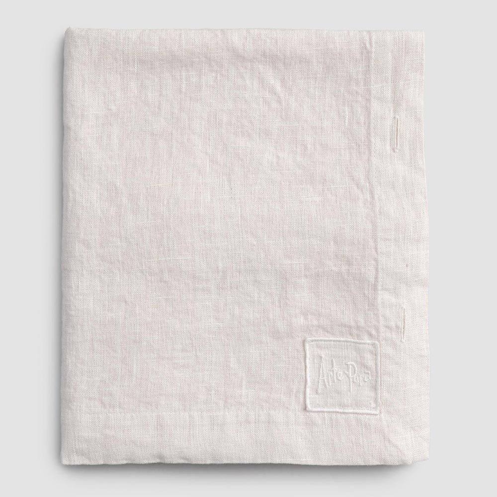 Toalha de mesa modular retangular de linho com botões de madrepérola, artesanal de qualidade made in Italy.