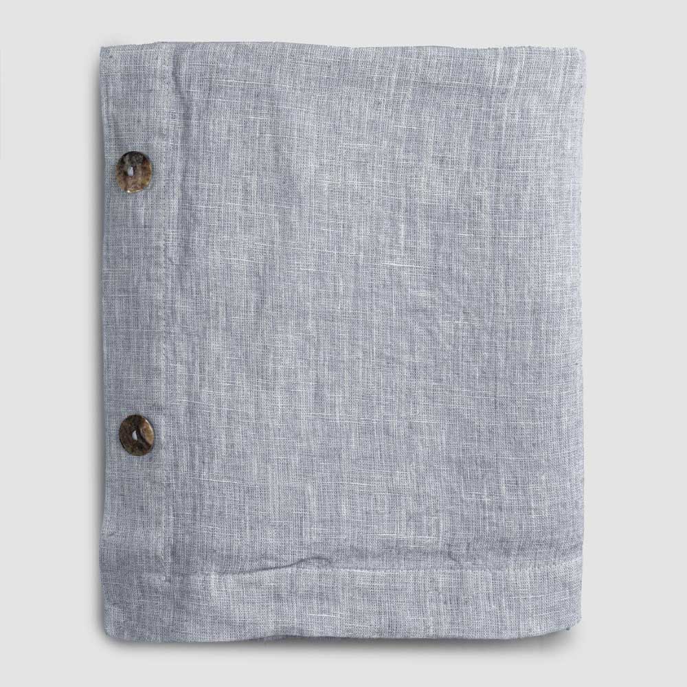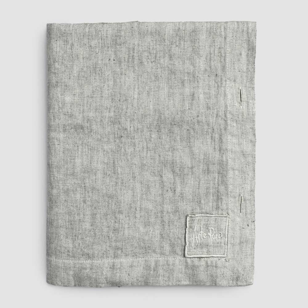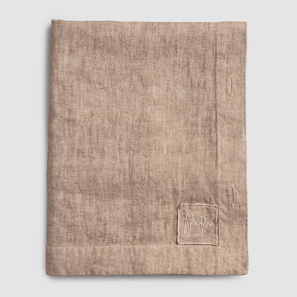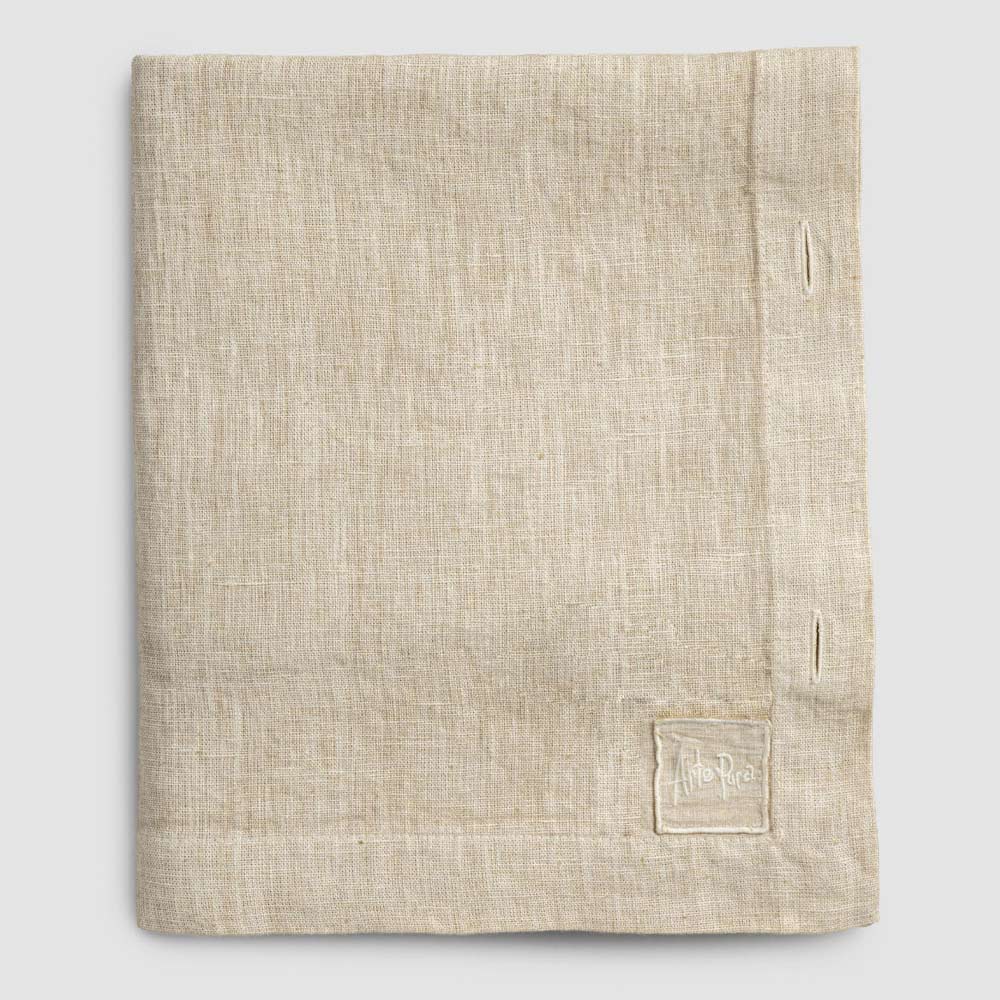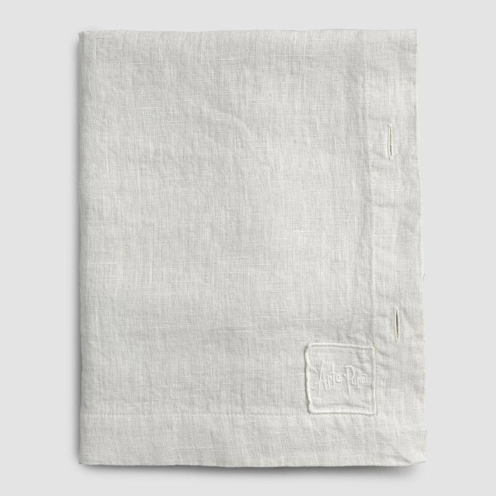 Toalha de mesa modular retangular de linho com botões de madrepérola, artesanal de qualidade made in Italy.