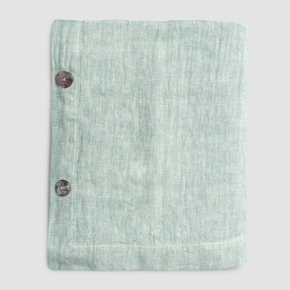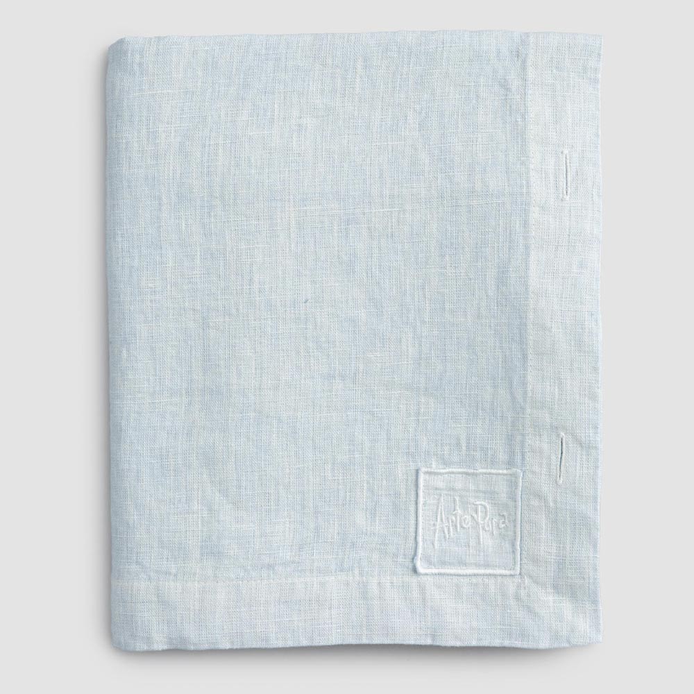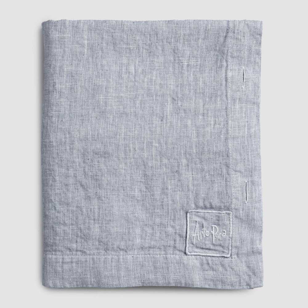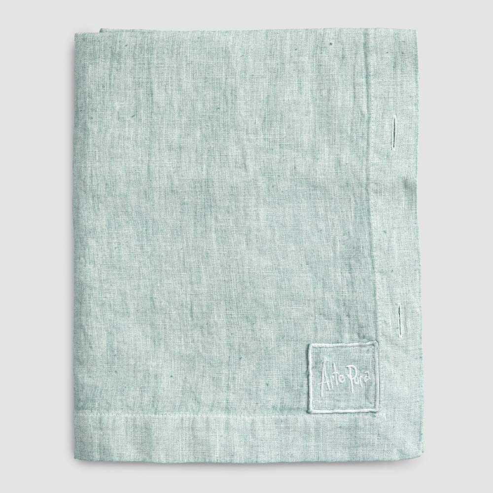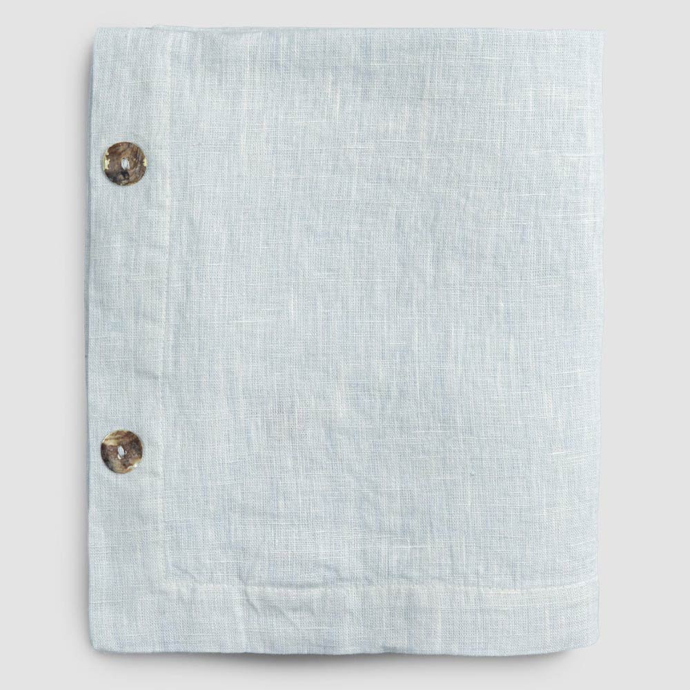 Toalha de mesa modular retangular de linho com botões de madrepérola, artesanal de qualidade made in Italy.