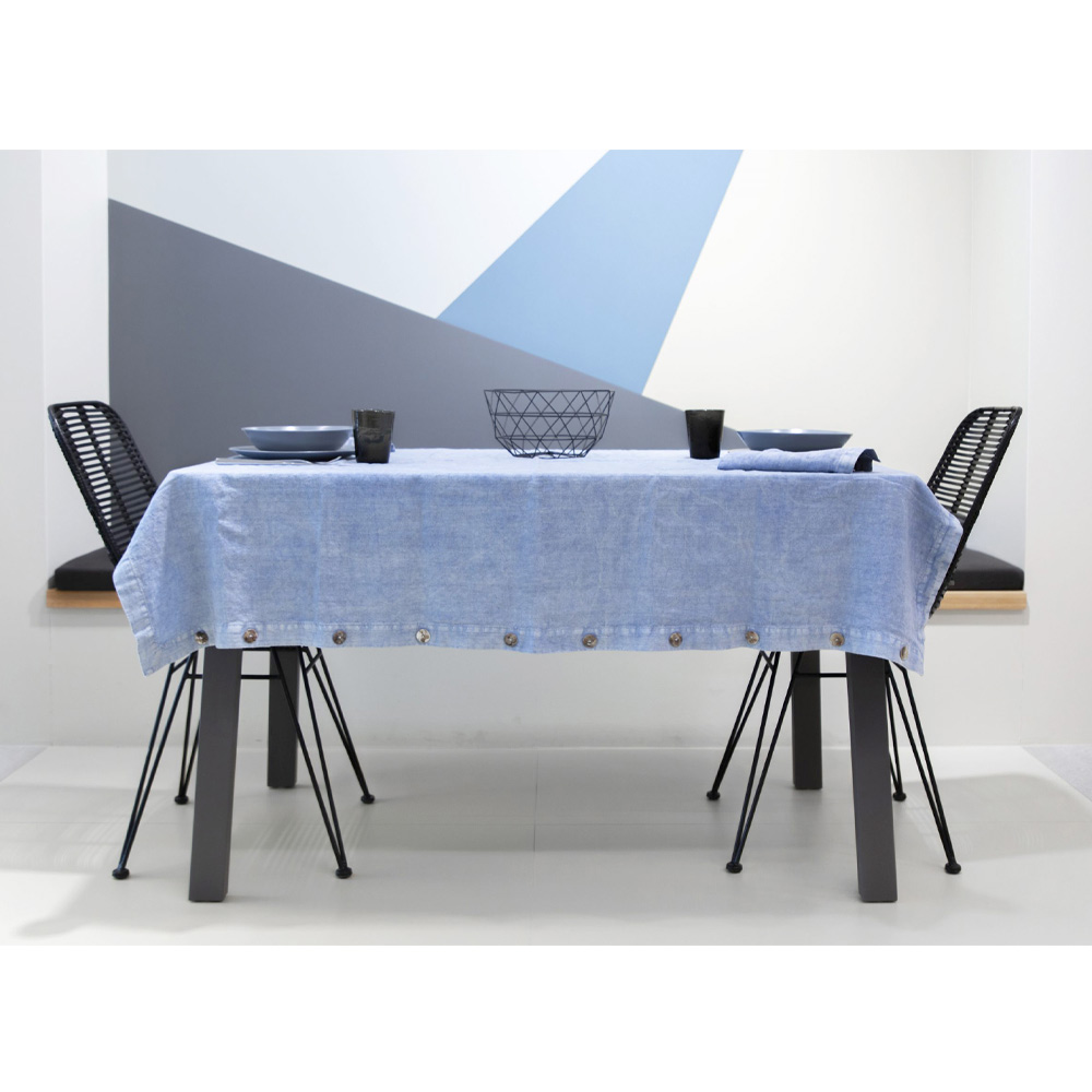 experiência sensorial sublime e sugestiva. A toalha de mesa tem botões práticos de um lado e caseados do outro. Esses detalhes podem ser usados, caso você decida comprar duas toalhas de mesa, para juntá-las e criar uma maior, se necessário.
