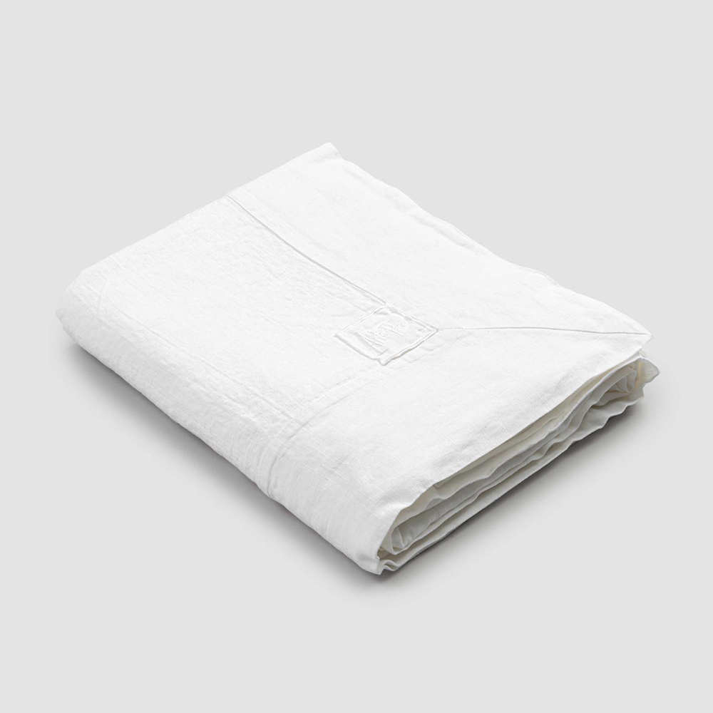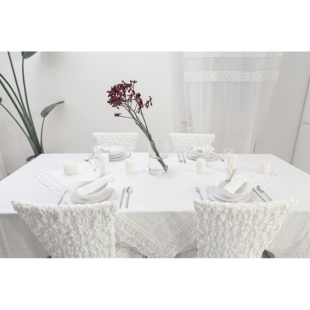 Grande toalha de mesa retangular em linho puro com bordas com ou sem renda, design artesanal de luxo made in Italy.