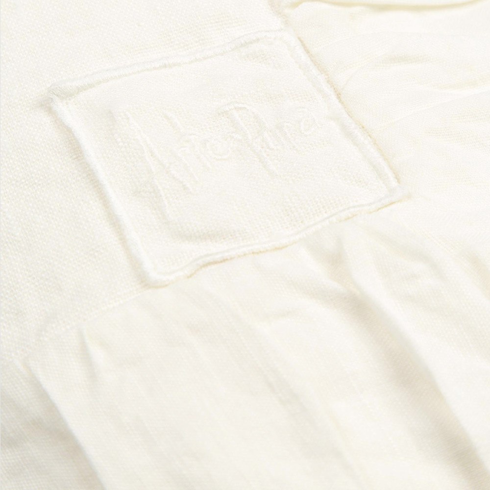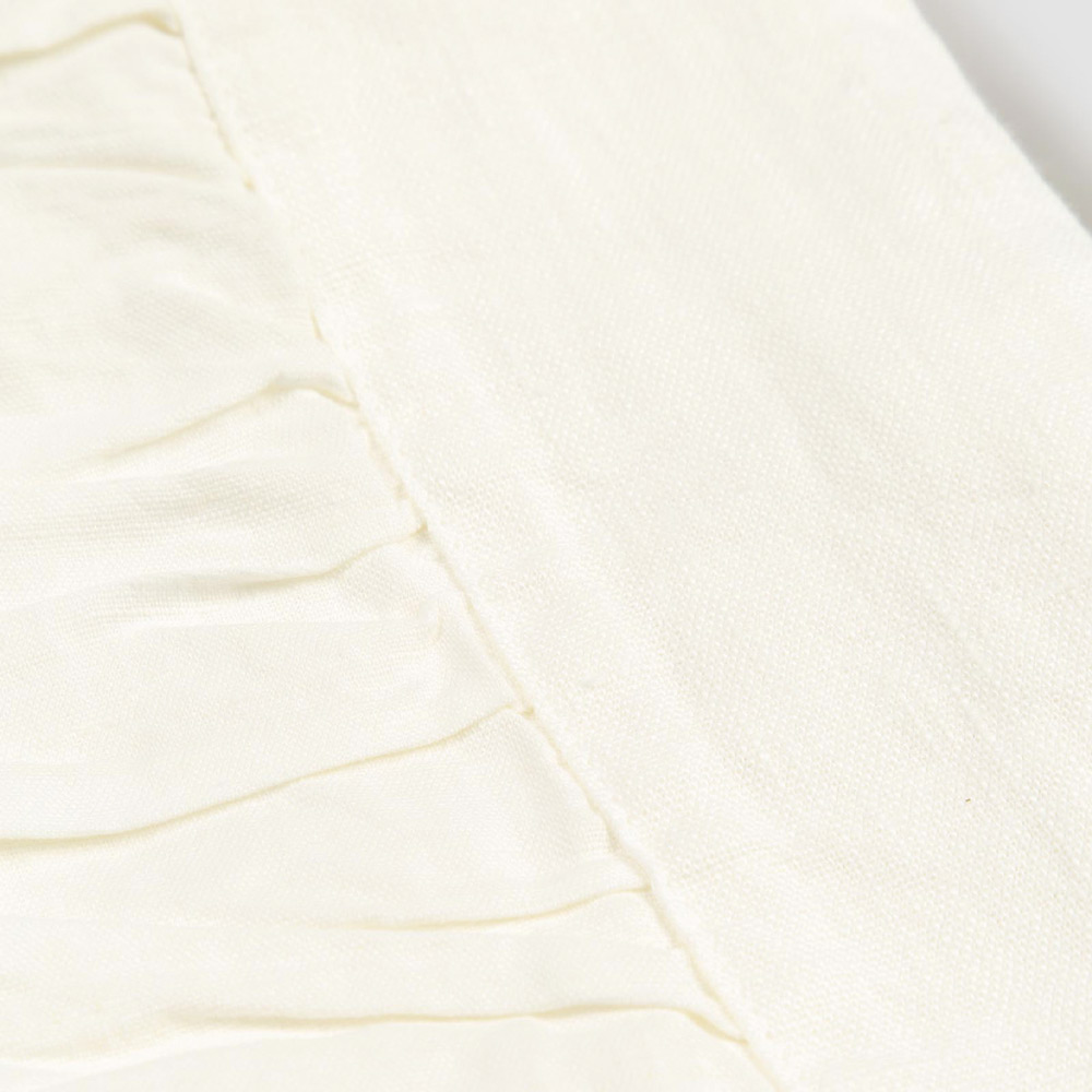 Toalha de mesa retangular de linho branco com relevo e rebordo dobrado, fabricada na Itália.