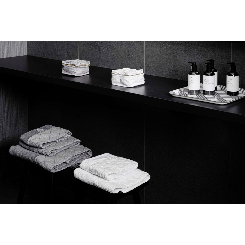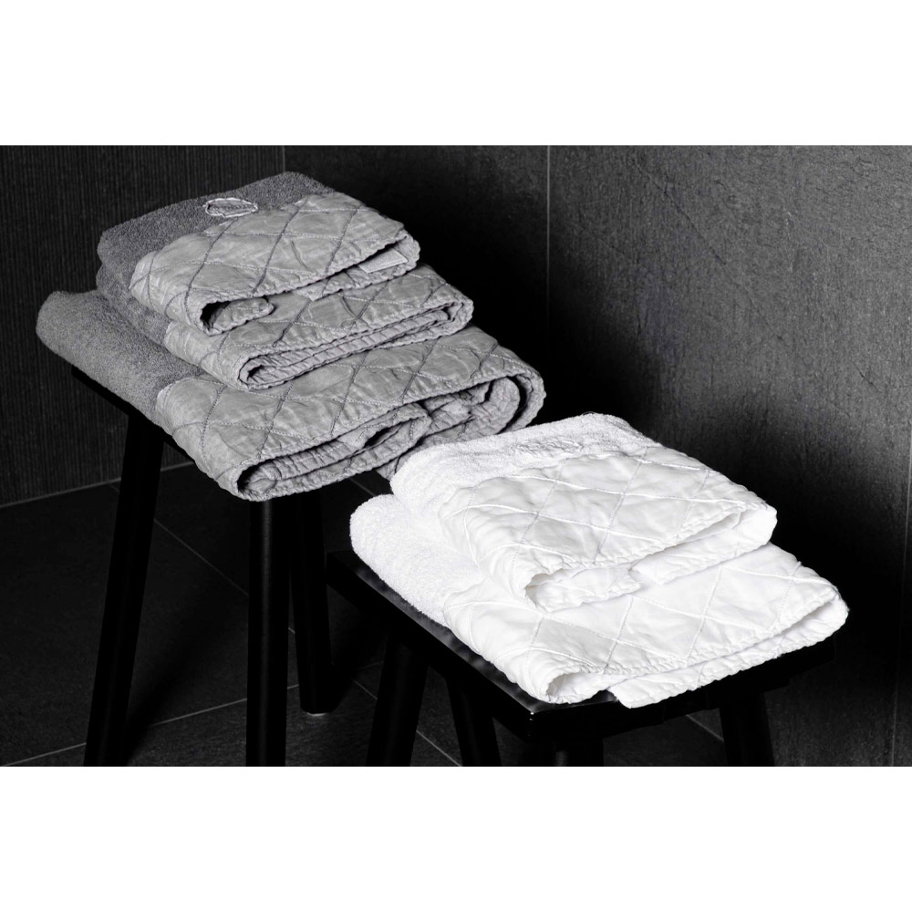 A toalha é produzida na Itália em algodão de alta qualidade e macia ao toque graças a tratamentos especiais que realçam sua aparência natural. É um tecido ideal para a casa de banho visto que é hipoalergénico , antibacteriano e sobretudo higroscópico, no pleno respeito da sua pele, graças à utilização de corantes naturais e hipoalergénicos que dão brilho e elegância.