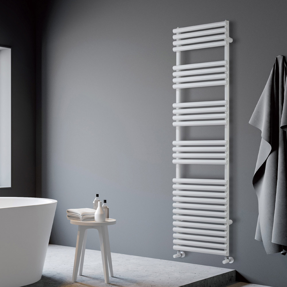 Toalheiro aquecido em aço carbono misto, fabricado na Itália.