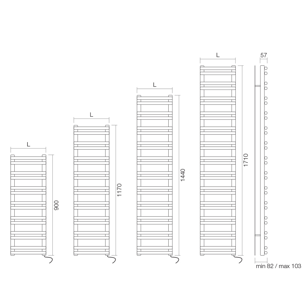 - Comprimento 60 cm – Profundidade 8,2 cm – Altura 171 cm – Potência 900 Watts