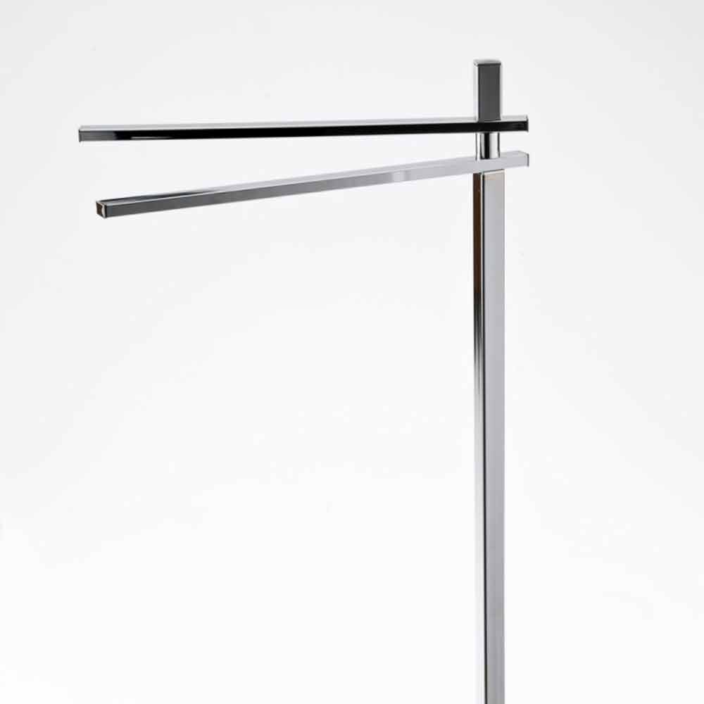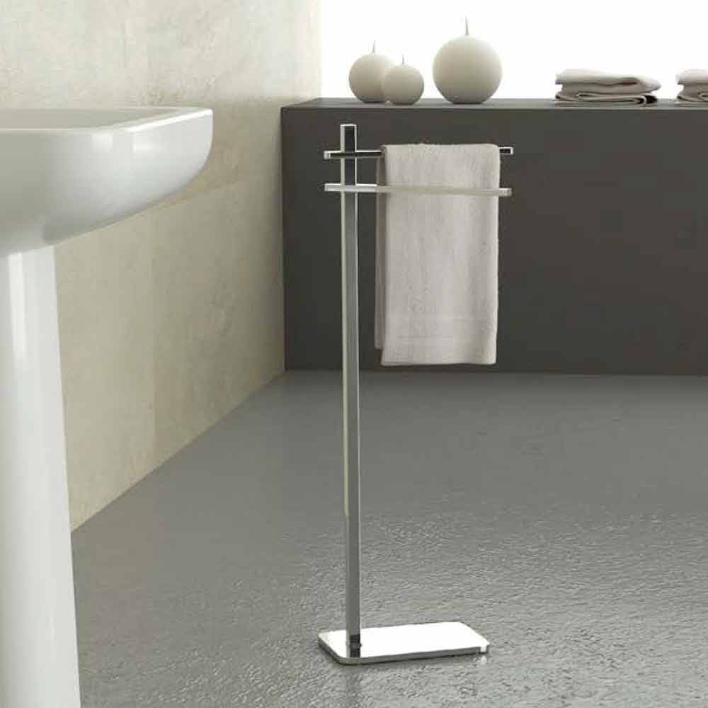 Candeeiro de pé para toalhas made in Italy com estrutura em ferro cromado de 2 braços. Caracterizado por linhas suaves e arredondadas, o que torna único este acessório de decoração de gosto requintado é a sua simplicidade inconfundível que sublinha a sua elegância e forte personalidade .