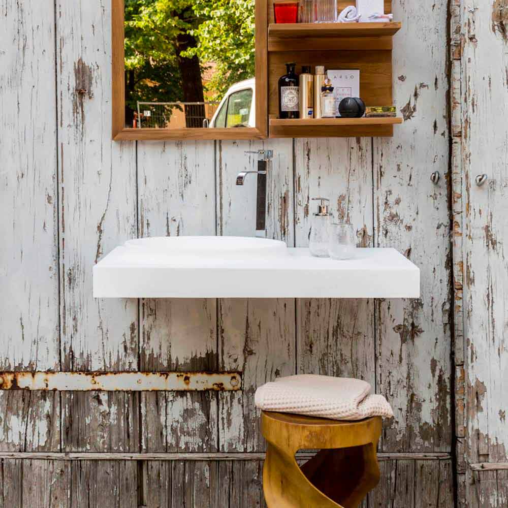 Tampo com lavatório integrado e orifício de extravasamento em Arona Solid Surface