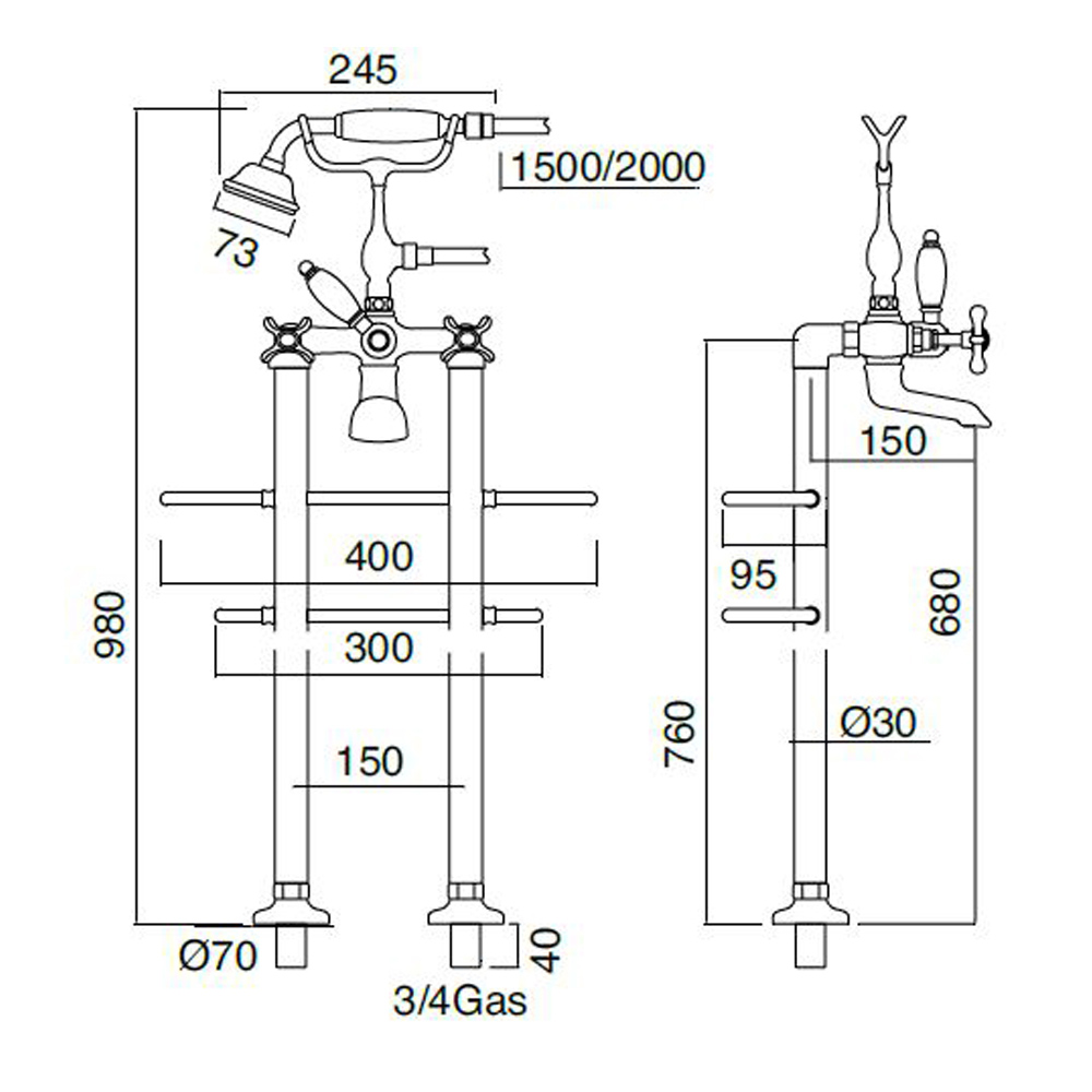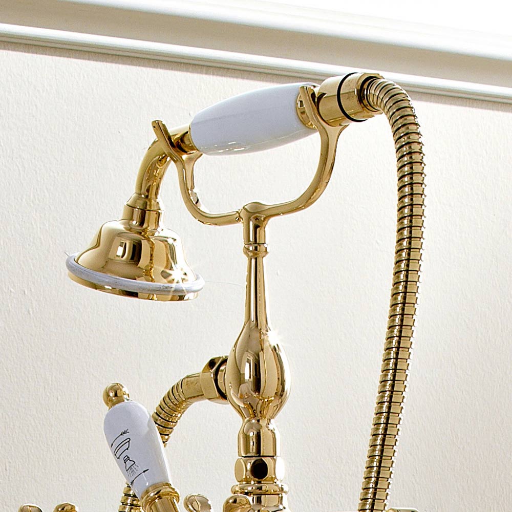 Banheira de chão clássica em latão trabalhado com chuveiro de mão, alta qualidade fabricada em Itália.