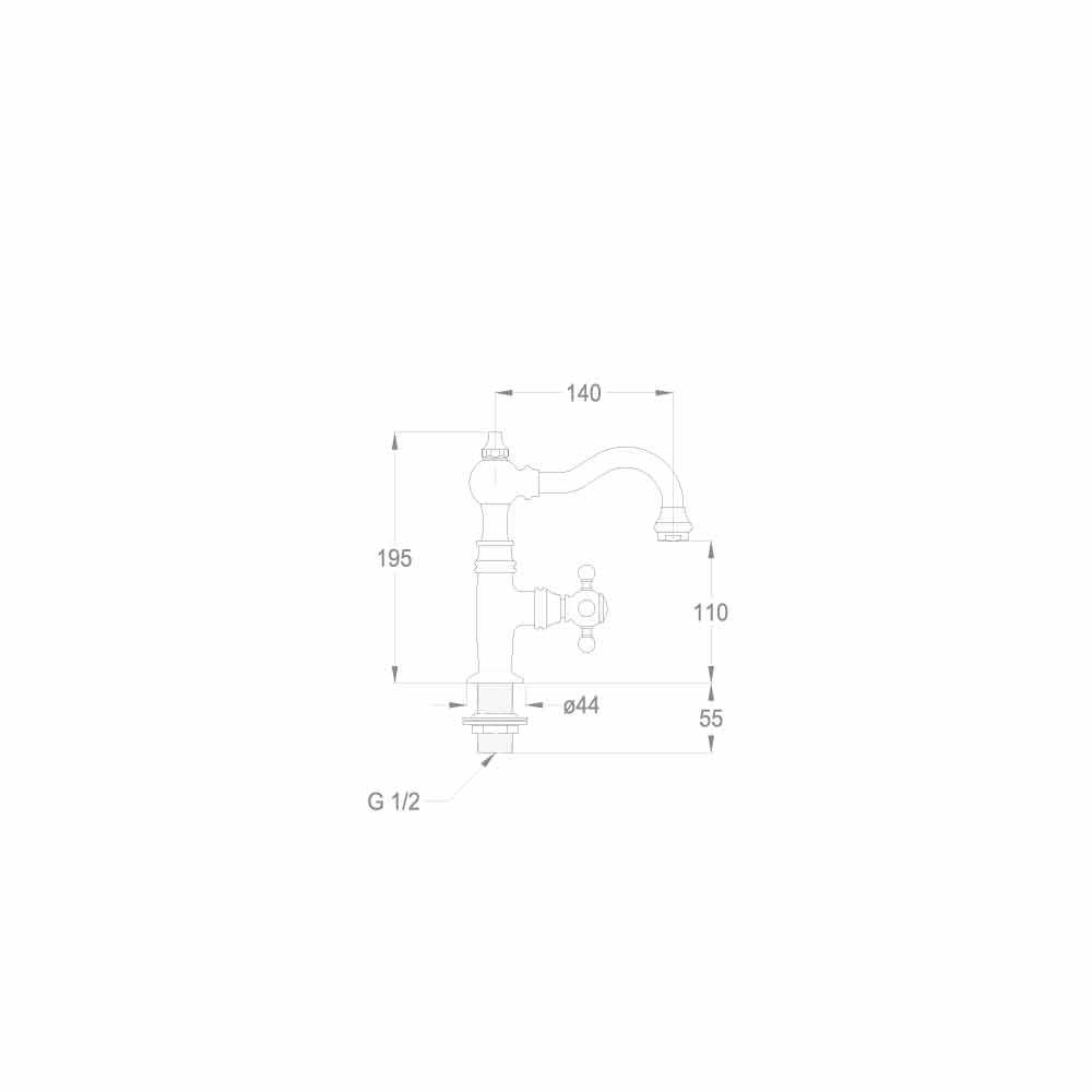 Torneira simples para lavatório em latão Fabricado na Itália.