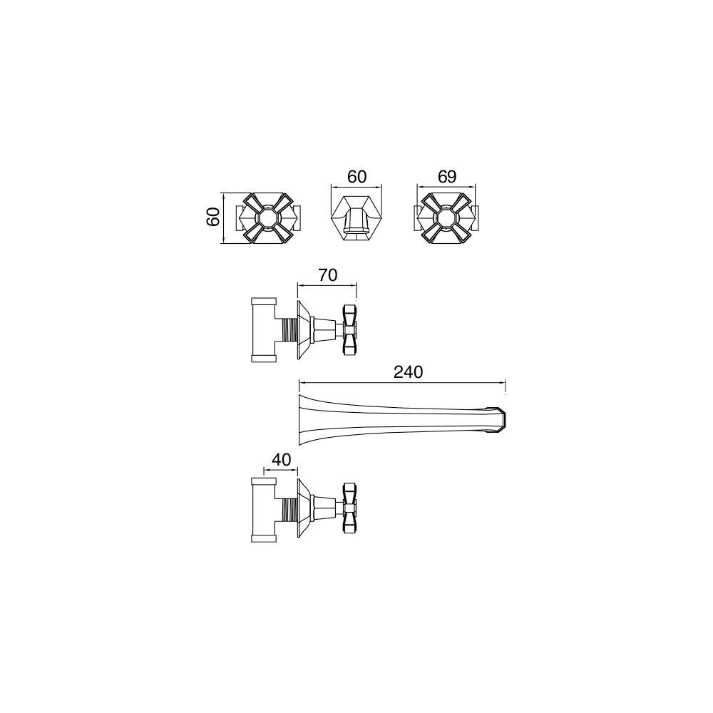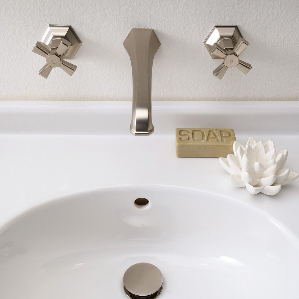 Torneira para lavatório ou pia de parede em latão modelo Silvana, fabricada na Itália.
