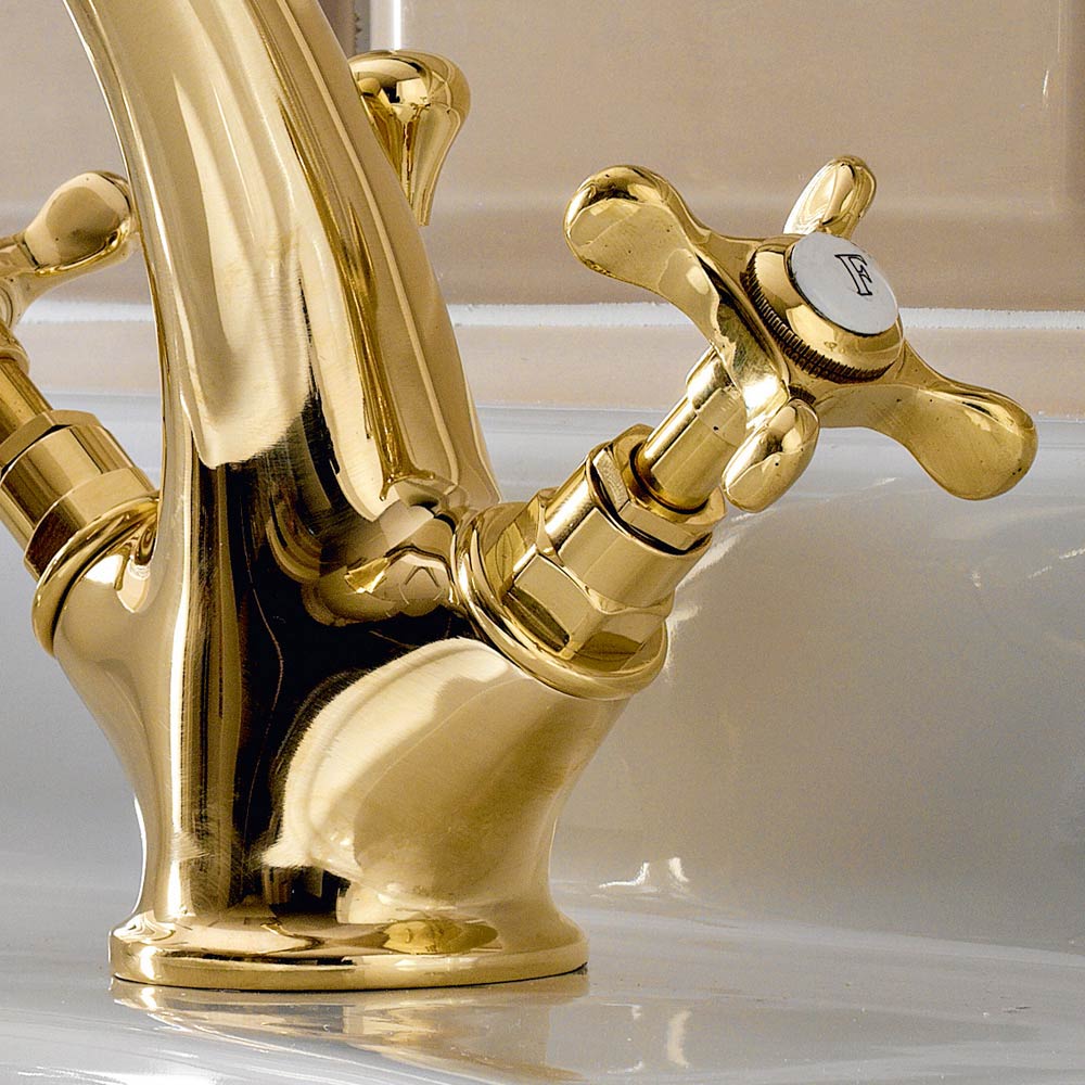 Torneira de lavatório de furo único de estilo clássico feita de latão artesanal feito na Itália.