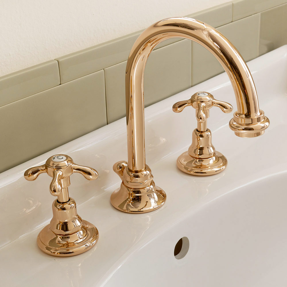 Torneira de lavatório em latão de design vintage fabricada em Itália.