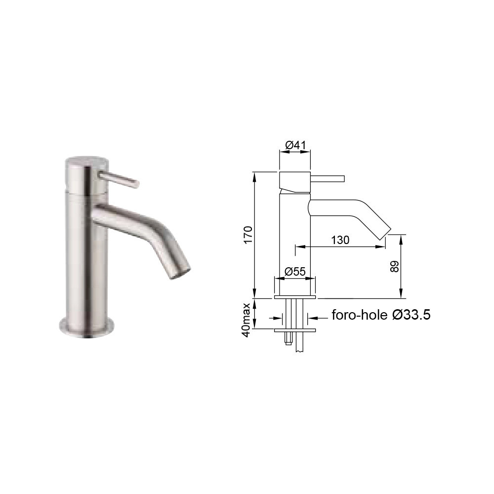 aço inoxidável AISI 316L , material 100% reciclável, inteiramente fabricado na Itália.