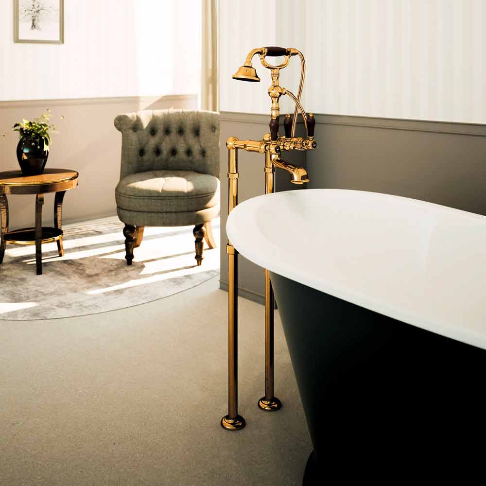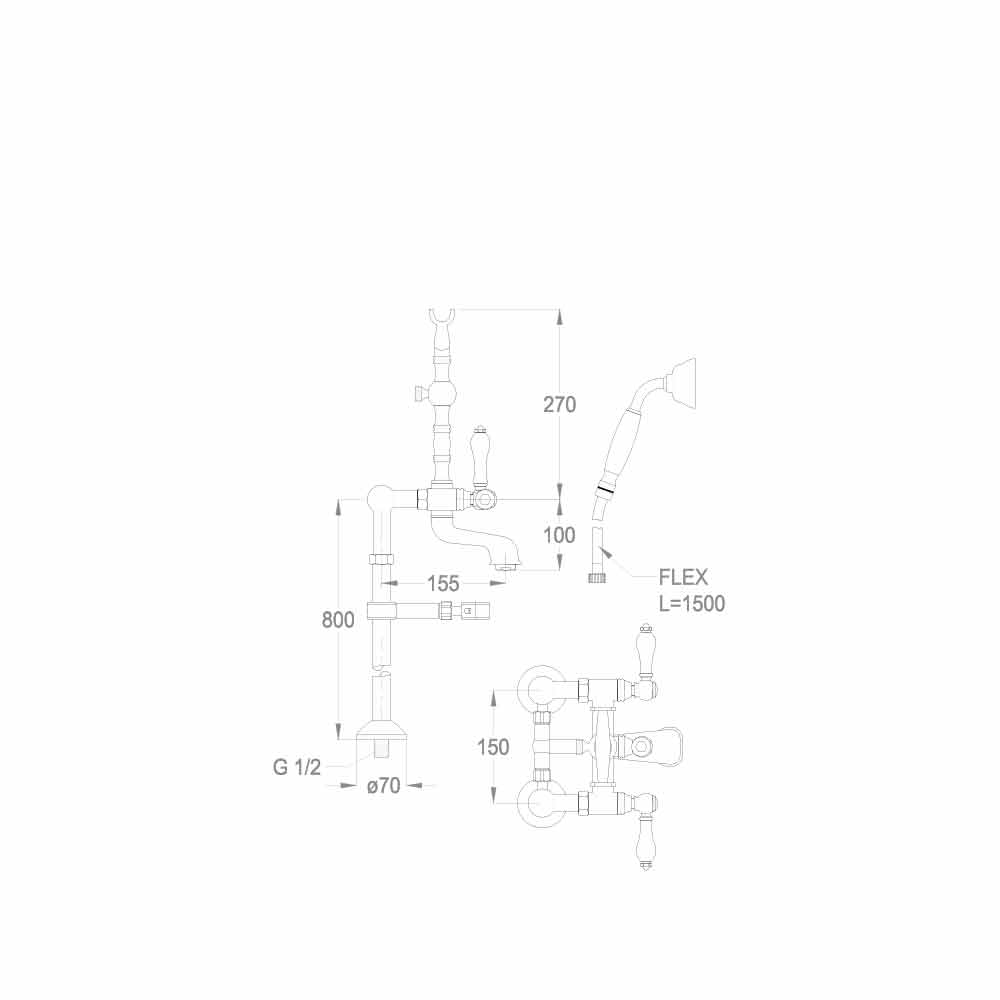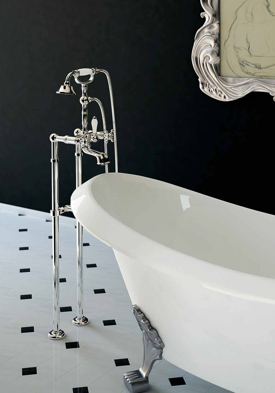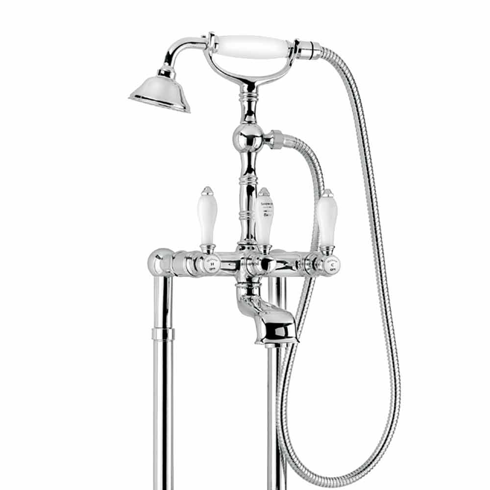 Misturador externo de banho em colunas de bancada com desviador e chuveiro de mão duplex Fabricado na Itália.