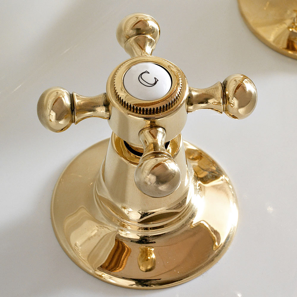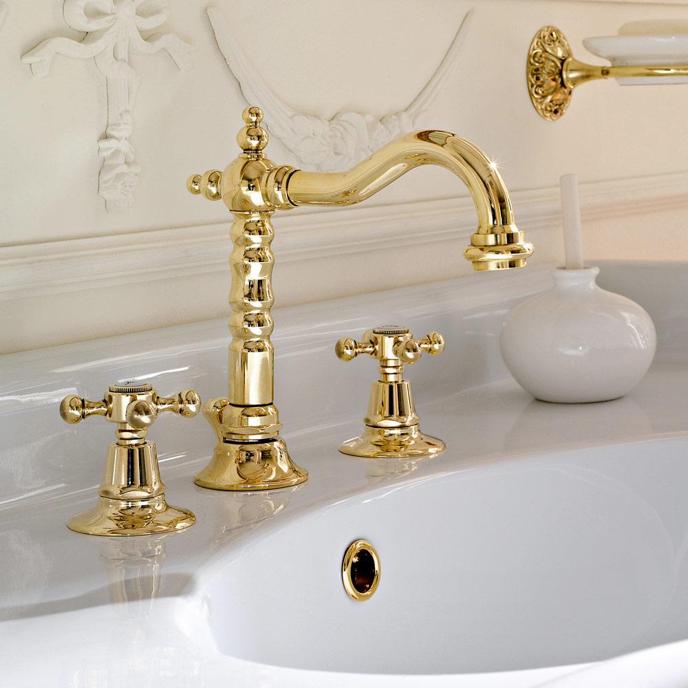 Torneira de lavatório de 3 furos estilo designer em latão Ursula, fabricada em Itália.
