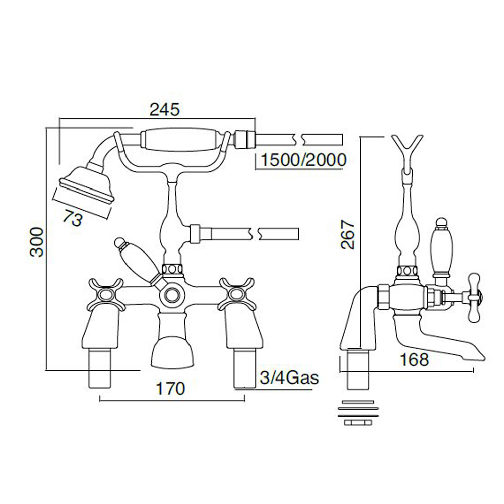 conjunto de banheira de borda com chuveiro de mão e mangueira flexível é inteiramente