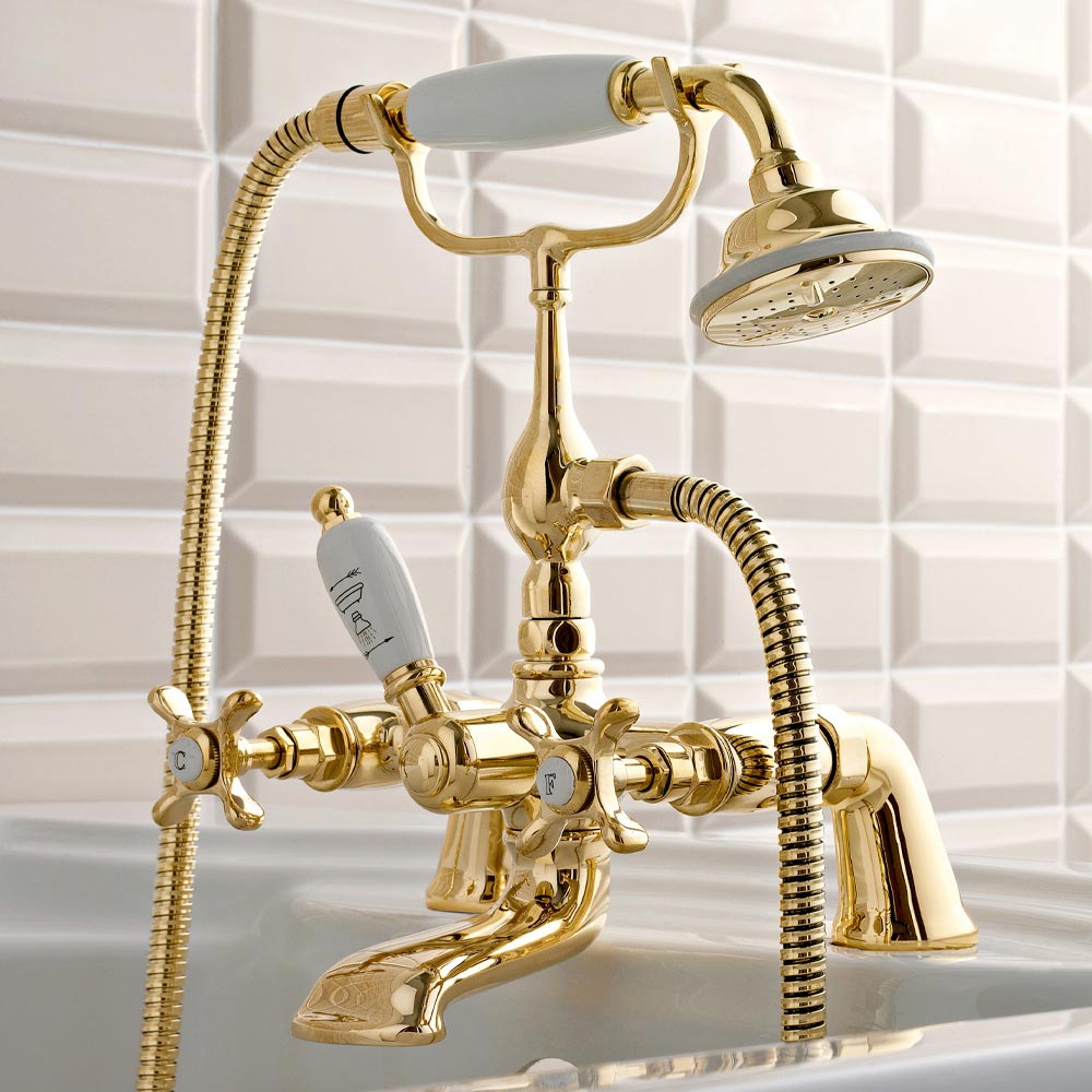 Torneira clássica de latão para banheira com chuveiro de mão, de alta qualidade fabricada na Itália.