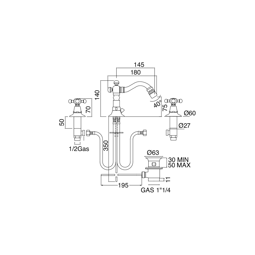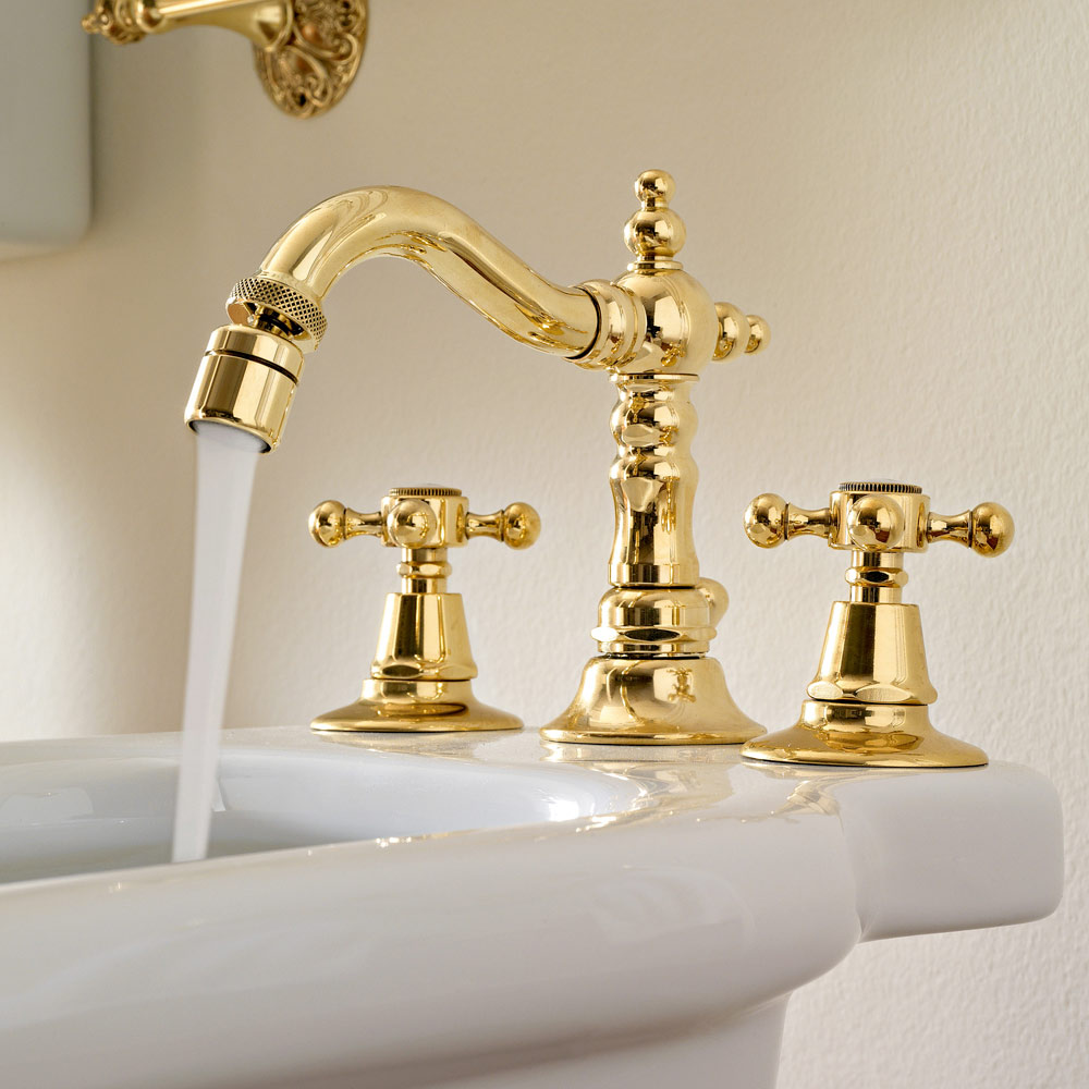 Torneira de bidé de 3 furos de design vintage fabricada em Itália em latão.