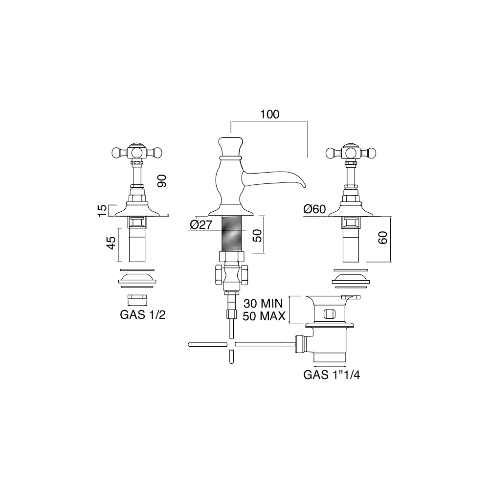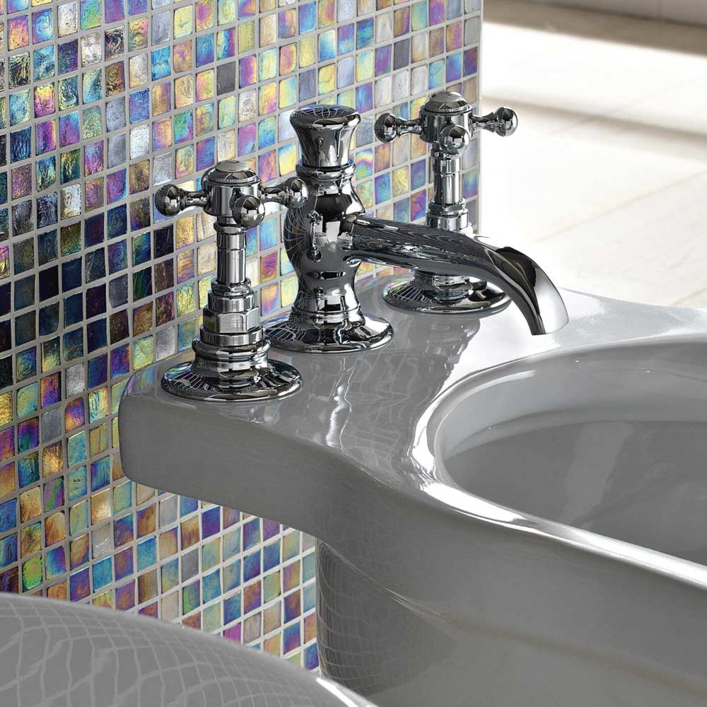 Torneira de bidé de 3 furos em latão de design vintage Elisea, fabricada em Itália.