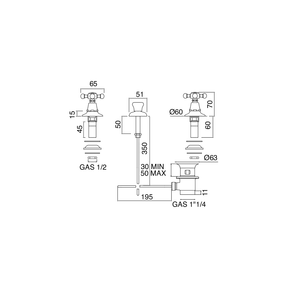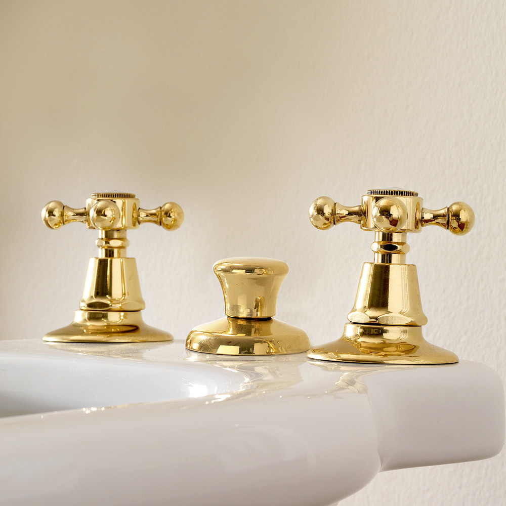 Torneira de bidé vintage de 3 furos com saída interna fabricada em Itália em latão, Ursula.