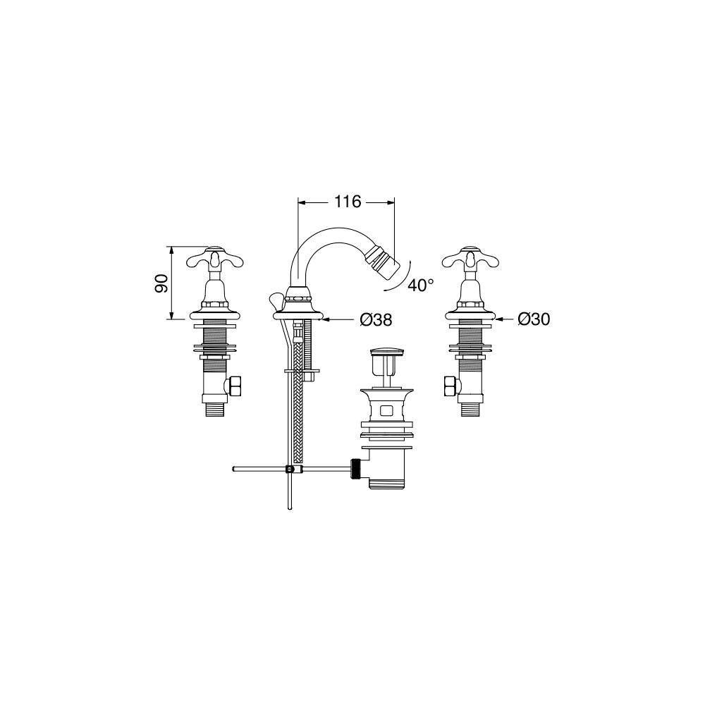 Torneira para bidé de 3 furos em latão, estilo vintage, fabricada em Itália, Klarisa.
