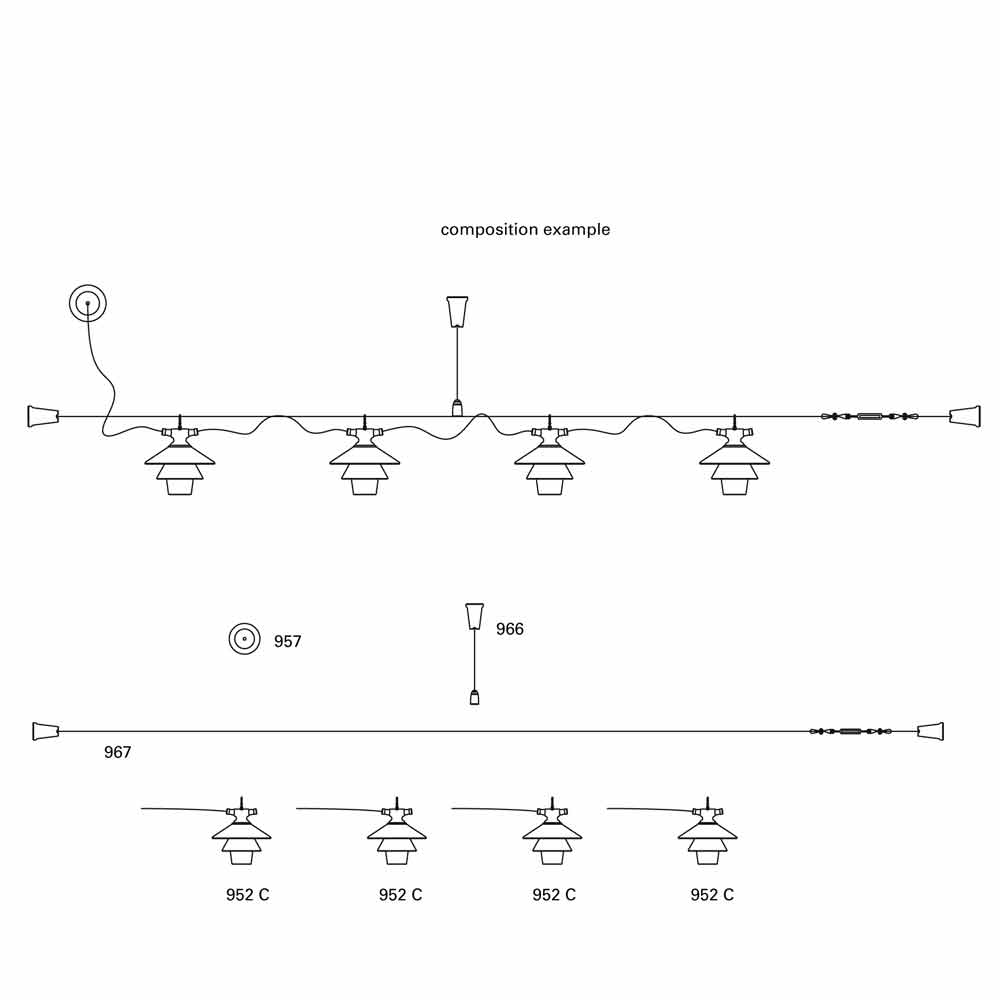 Graças à rosácea Battersea é possível combinar diferentes tipos de lâmpadas da série Battersea (art. 951, 954-22, 952) criando interessantes jogos de luz.