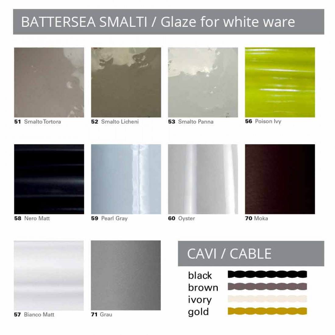 Você pode personalizar o Battersea escolhendo a cor do abajur e do cabo elétrico. Escreva na caixa apropriada as cores escolhidas.
