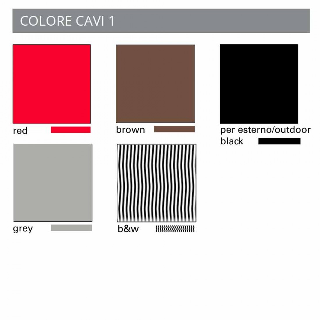 As seguintes cores também podem ser escolhidas para o cabo: vermelho, marrom, cinza ou preto e branco.