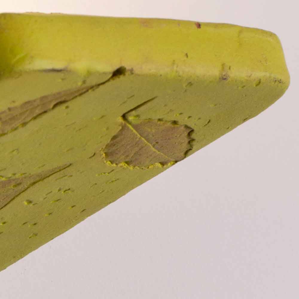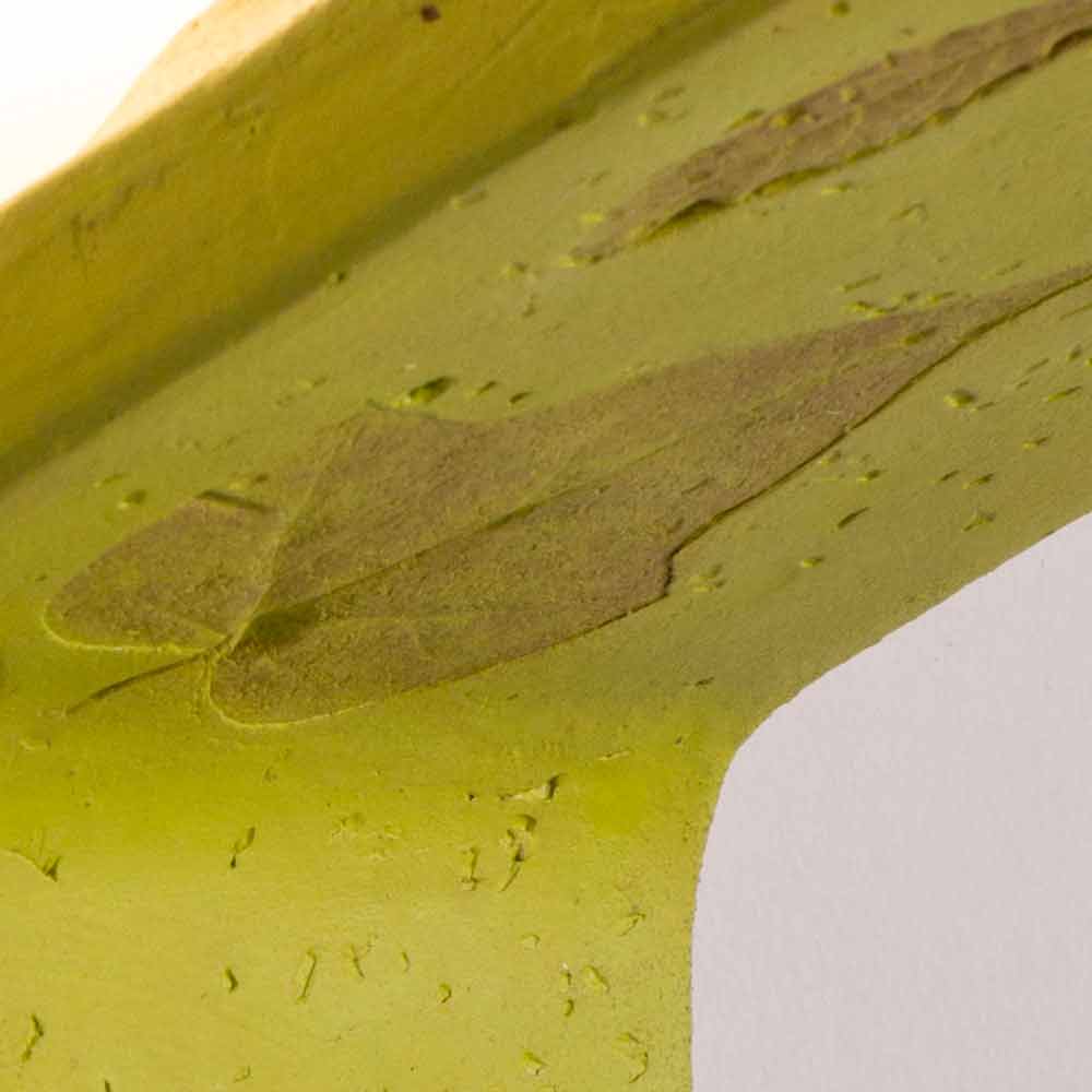 O design desta decoração é produzido com folhas reais pressionadas à mão diretamente no molde.