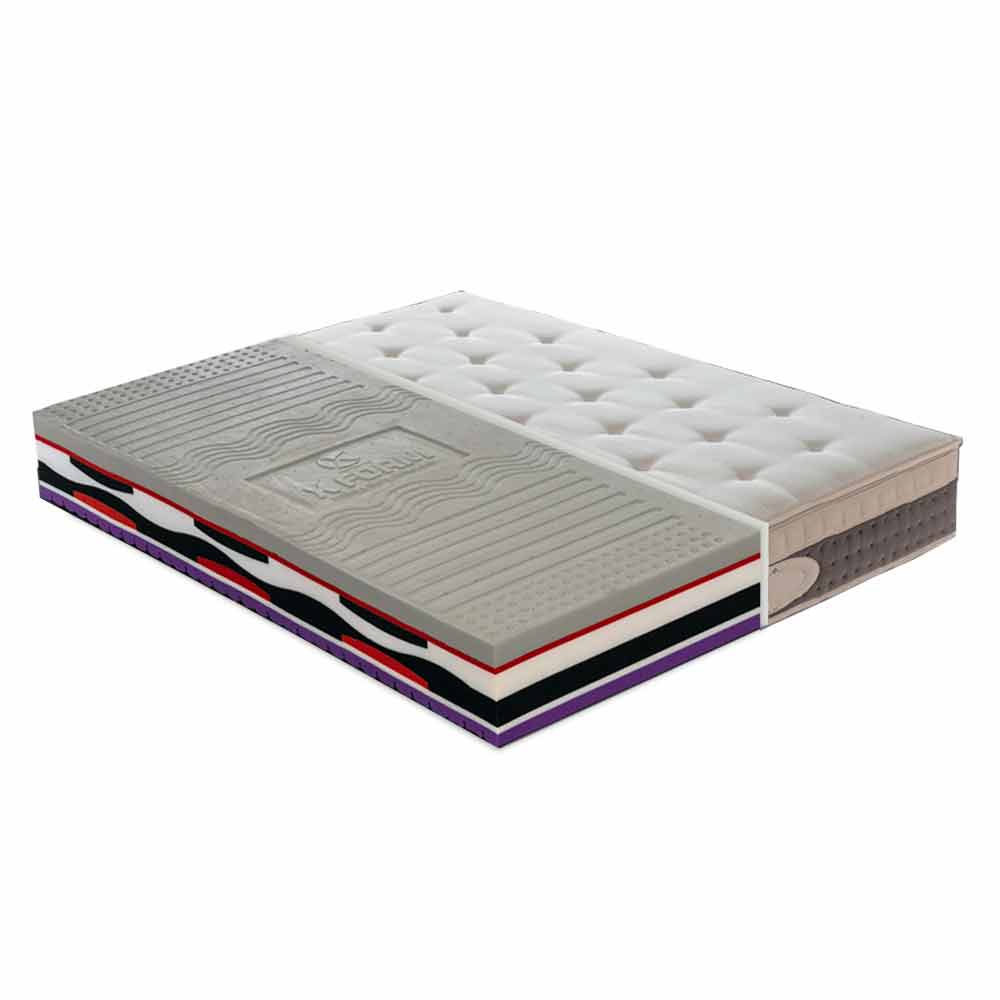 Folha interna composta por 5 camadas: - 5,0 cm de memória Memory cinzenta Xform densidade de 65 kg / m3 do molde (memória viscoelástica de retorno lento, à base de água com espuma e com adição de íons de prata e carbono);