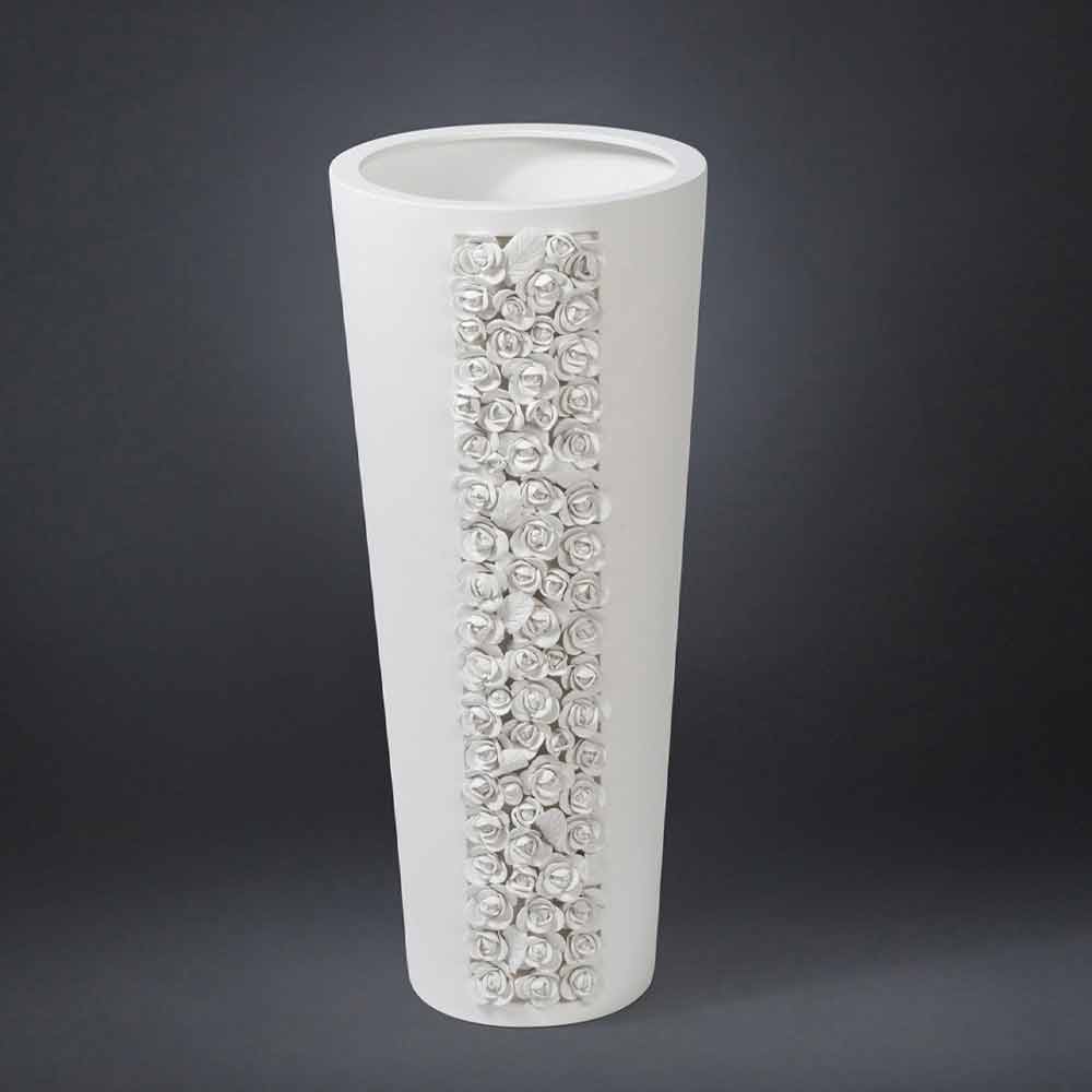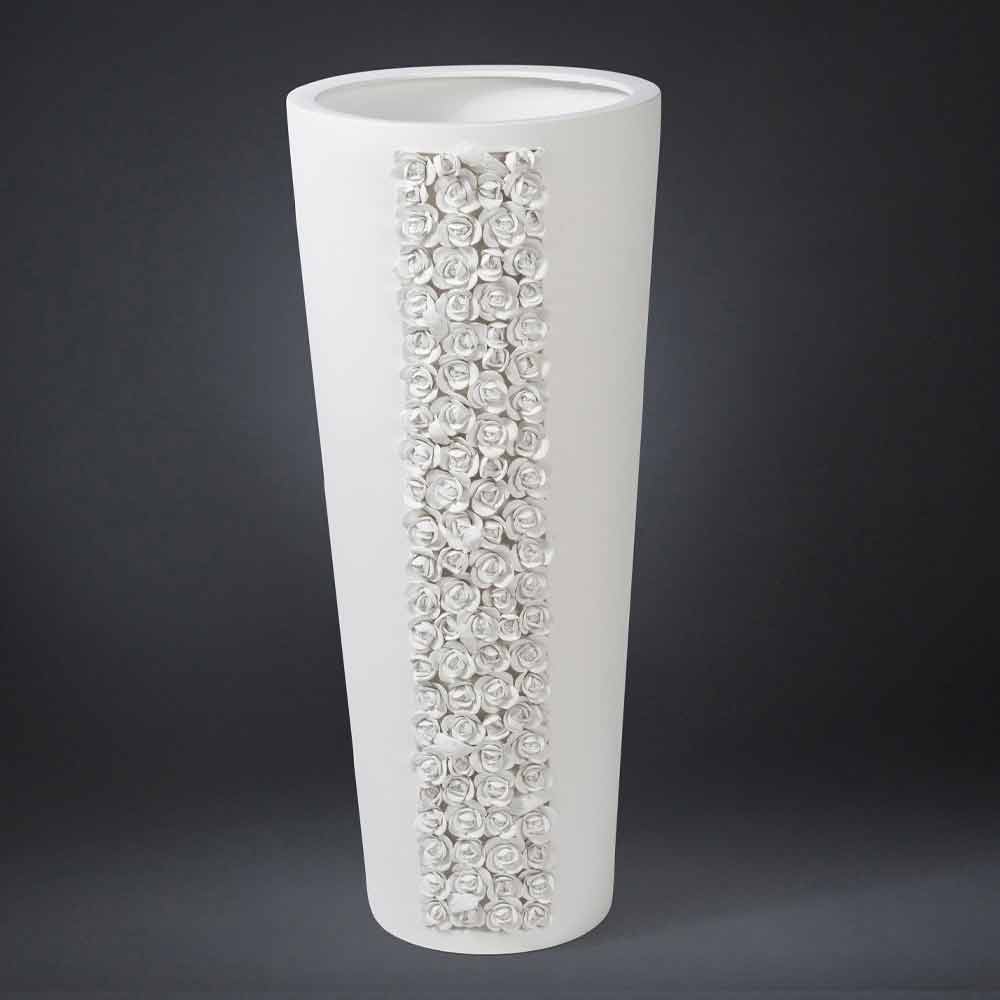 Vaso ornamental alto em cerâmica branca artesanal na Itália.