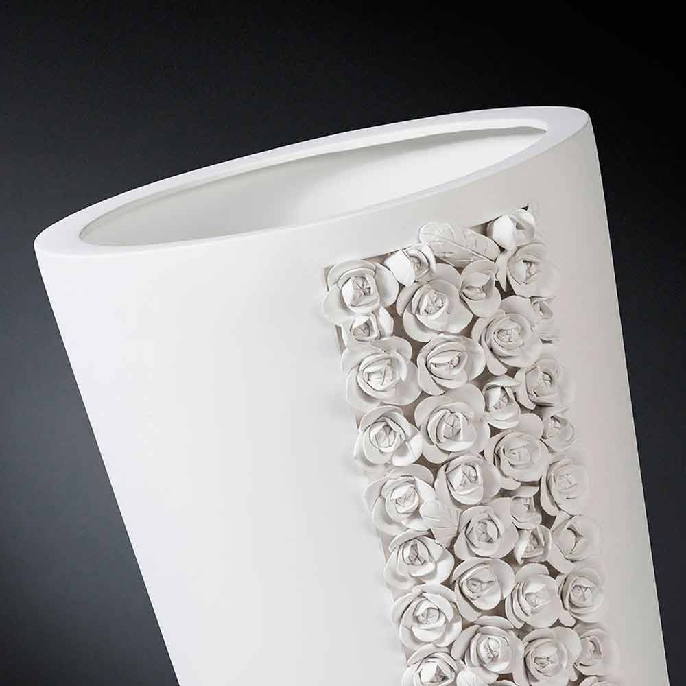 linhas essenciais e versáteis enriquecidas por um detalhe maravilhoso com uma textura camélia que cobre parte da estrutura do vaso. Este detalhe em conjunto com o acabamento requintado escolhido conferem a este complemento toda a sua