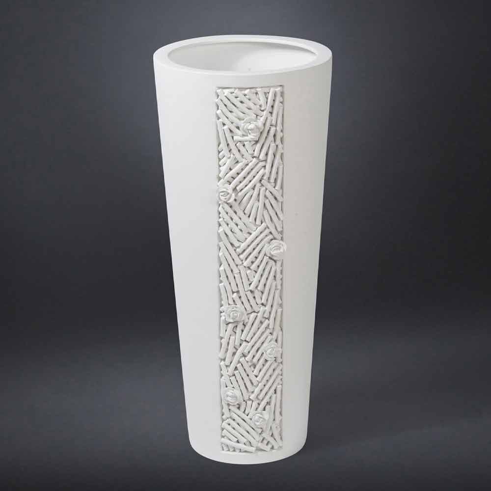 Vaso decorativo alto feito na Itália em cerâmica branca opaca por meio de habilidade manual . Um estilo simples e essencial completado e enriquecido por um detalhe refinado com uma textura de tronco que caracteriza parte da estrutura do vaso tornando-o único e original. Este detalhe juntamente com o acabamento elegante escolhido conferem a este complemento toda a sua personalidade eclética tornando-o uma solução perfeita para espaços caracterizados por um estilo elegante . A utilização da cerâmica e do artesanato tornam-no num elemento decorativo exclusivo e requintado, valorizando e valorizando a sua qualidade. Uma estética ideal para os mais variados ambientes, desde artigos de decoração até hotéis, restaurantes, áreas comerciais, spas mas também como cenário para eventos e casamentos.