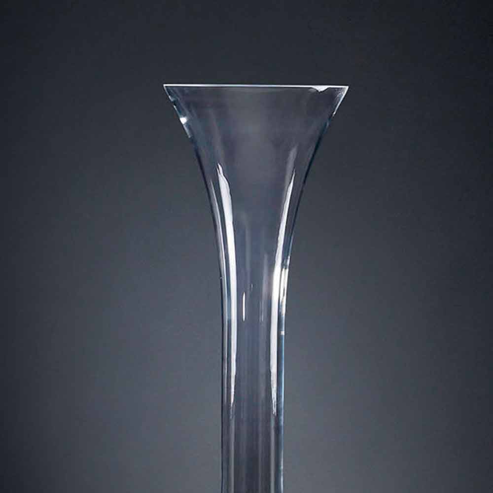 Vaso alto para interior em vidro transparente com base em vidro branco por processo inteiramente made in Italy . Um complemento requintado cuja estrutura se desenvolve em altura propondo uma figura esguia com formas suaves perfeitas para decorar e completar ambientes com uma estética sofisticada e elegante graças também à elegância atemporal do vidro, um material de qualidade e alto valor . Um projeto ideal para os mais variados ambientes, desde decoração até hotéis, restaurantes, áreas comerciais, spas, mas também como cenário para eventos e casamentos.