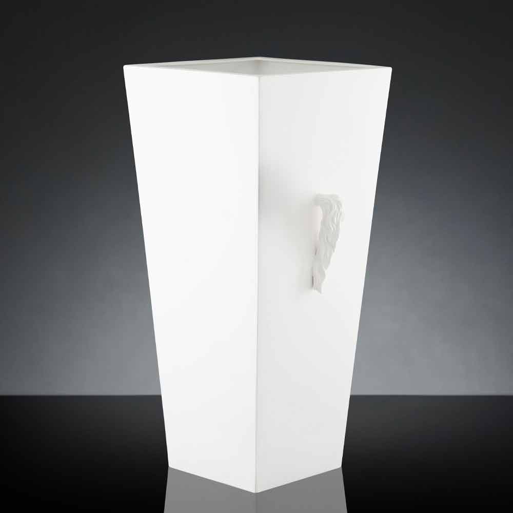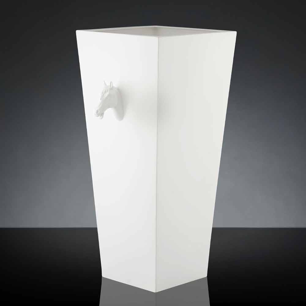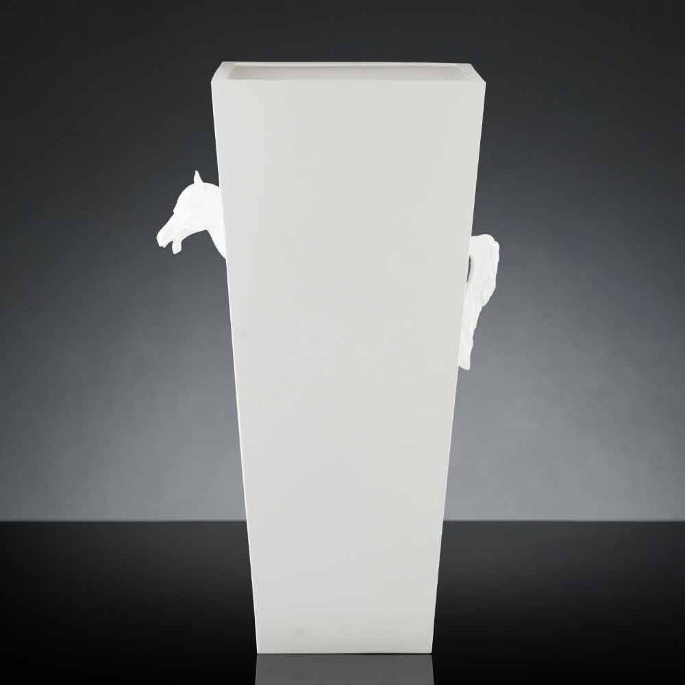 Vaso decorativo para interiores em forma quadrada em cerâmica branca opaca feita à mão na Itália por artesãos que são especialistas no setor há gerações. Um complemento com uma estética essencial e elegante enriquecida e tornada única pelos detalhes originais em forma de cavalo posicionados na parte superior do vaso que realçam a sua alma criativa e o tornam uma solução perfeita tanto para ambientes de estilo clássico como para espaços mais modernos em que ele cria um maravilhoso jogo de contrastes entre estilos diferentes. A utilização de cerâmica e artesanato agregam seu valor e valor para dar vida a um resultado exclusivo e de alta qualidade . Um projeto ideal para os mais variados ambientes, desde decoração até hotéis, restaurantes, áreas comerciais, spas, mas também como cenário para eventos e casamentos.