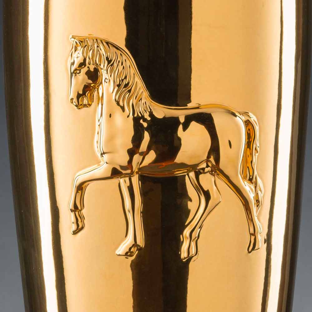 Vaso artesanal para interiores em cerâmica com acabamento em ouro brilhante Fabricado na Itália.